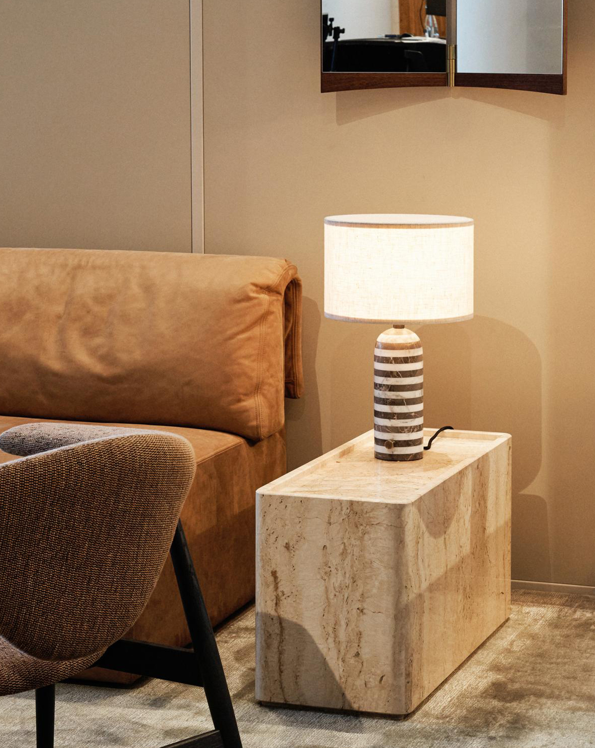 除了展示 Pierre Paulin 和 Mathieu Matégot 等人的新款家具和照明作品外,GUBI 還展示了來自當代設計工作室(如 Vibeke Fonnesberg Schmidt 和 GamFratesi)的新材料思考。這些新推出的作品探索了材料性,包括天然石材的原始性、有機玻璃的拋光完美性、金屬的延展性、新材料技術的非凡潛力,以及經常被忽視的材料—光本身的美學可能性。
