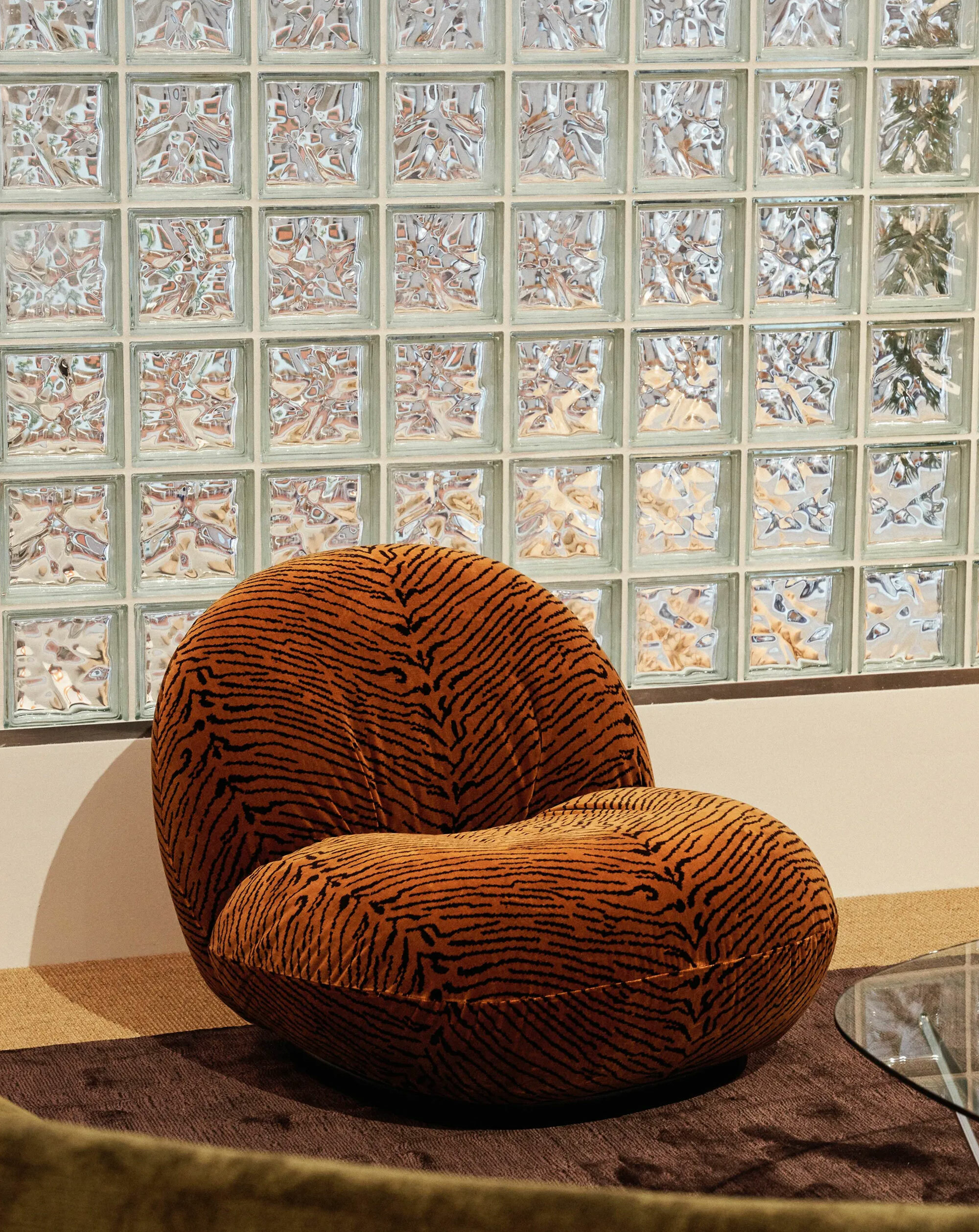 義大利著名紡織品設計公司 Dedar 與 GUBI 攜手,與威嚴的老虎進行一場意想不到的觸覺邂逅。受到大型貓科動物條紋的催眠圖案的啟發,Dedar 帶領你踏上沉浸式叢林之旅。