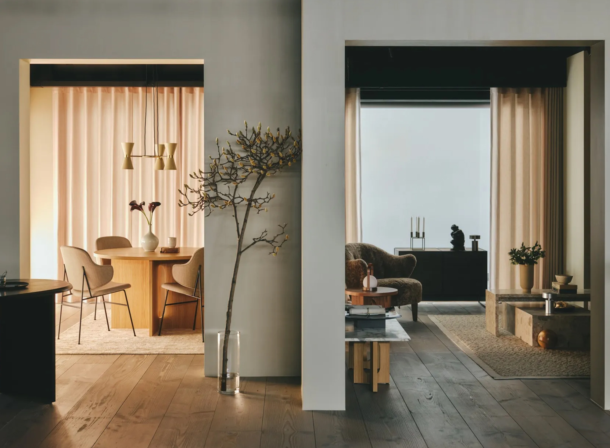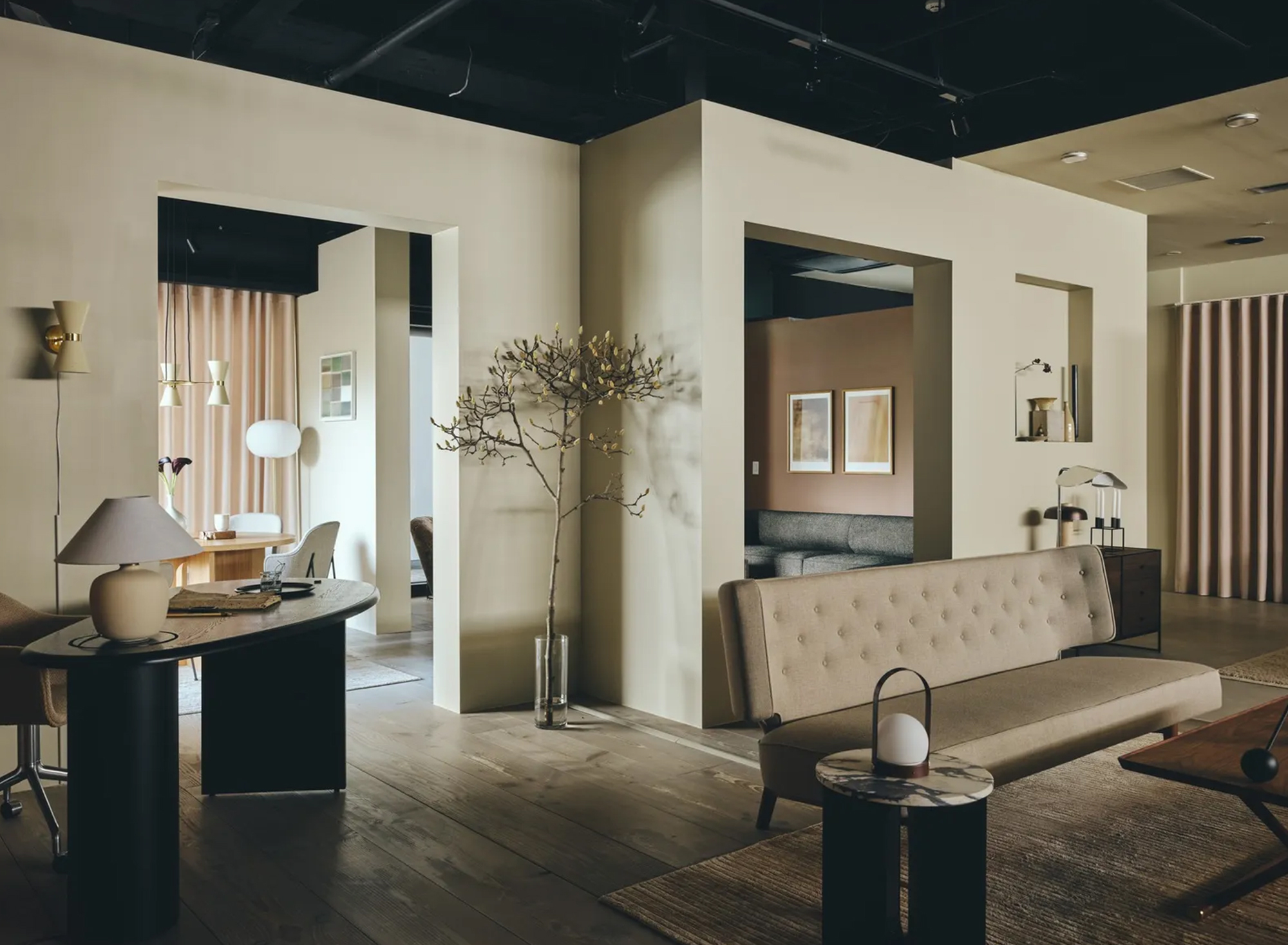 Audo Copenhagen 在東京全新開幕,以濃厚的哥本哈根風格驚艷亮相!走進展廳,奶油色的Vilhelm沙發、溫潤的亞麻吊燈、溫暖的土色牆壁環繞四周,瞬間讓人沉浸在北歐美學的氛圍中。