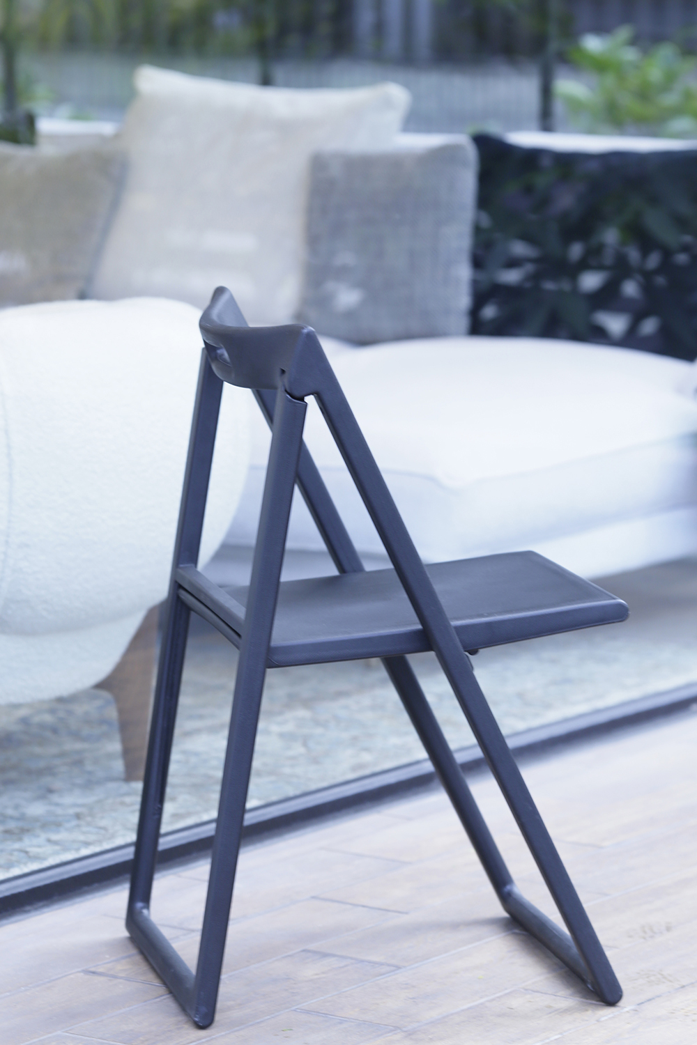 折疊起來的ENJOY 460 戶外椅可以放入角落或是轉角處