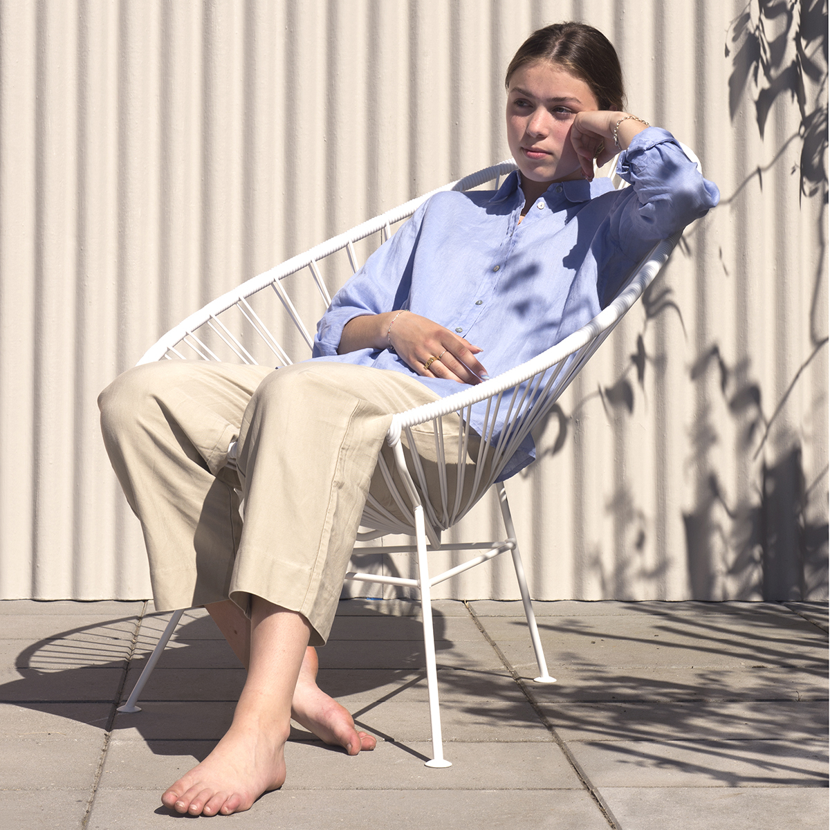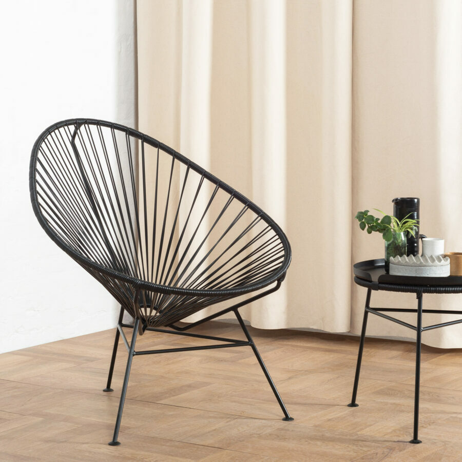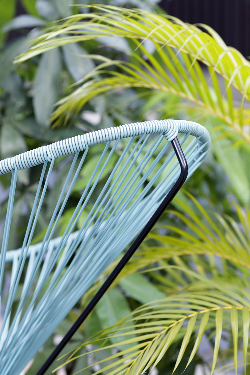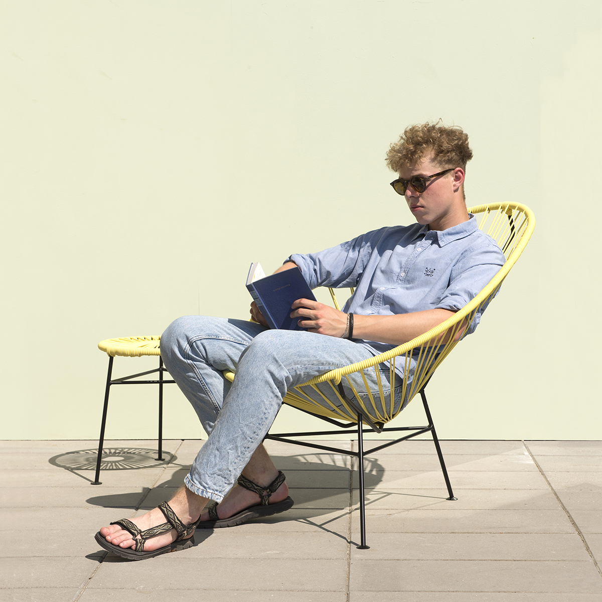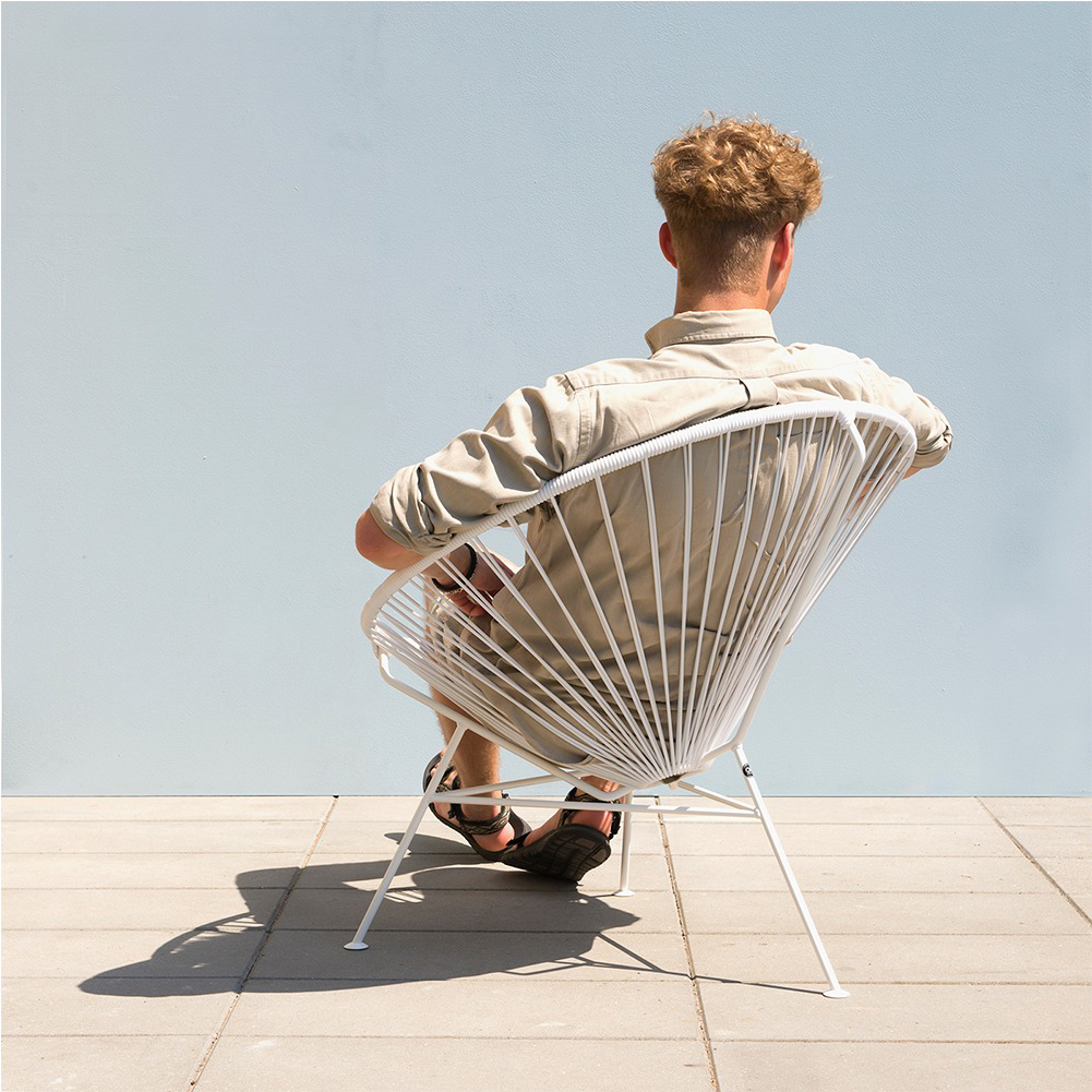 Acapulco 休閒椅選用抗紫外線PVC繩以及表面經過特殊處理的實心鋼框架製成