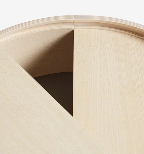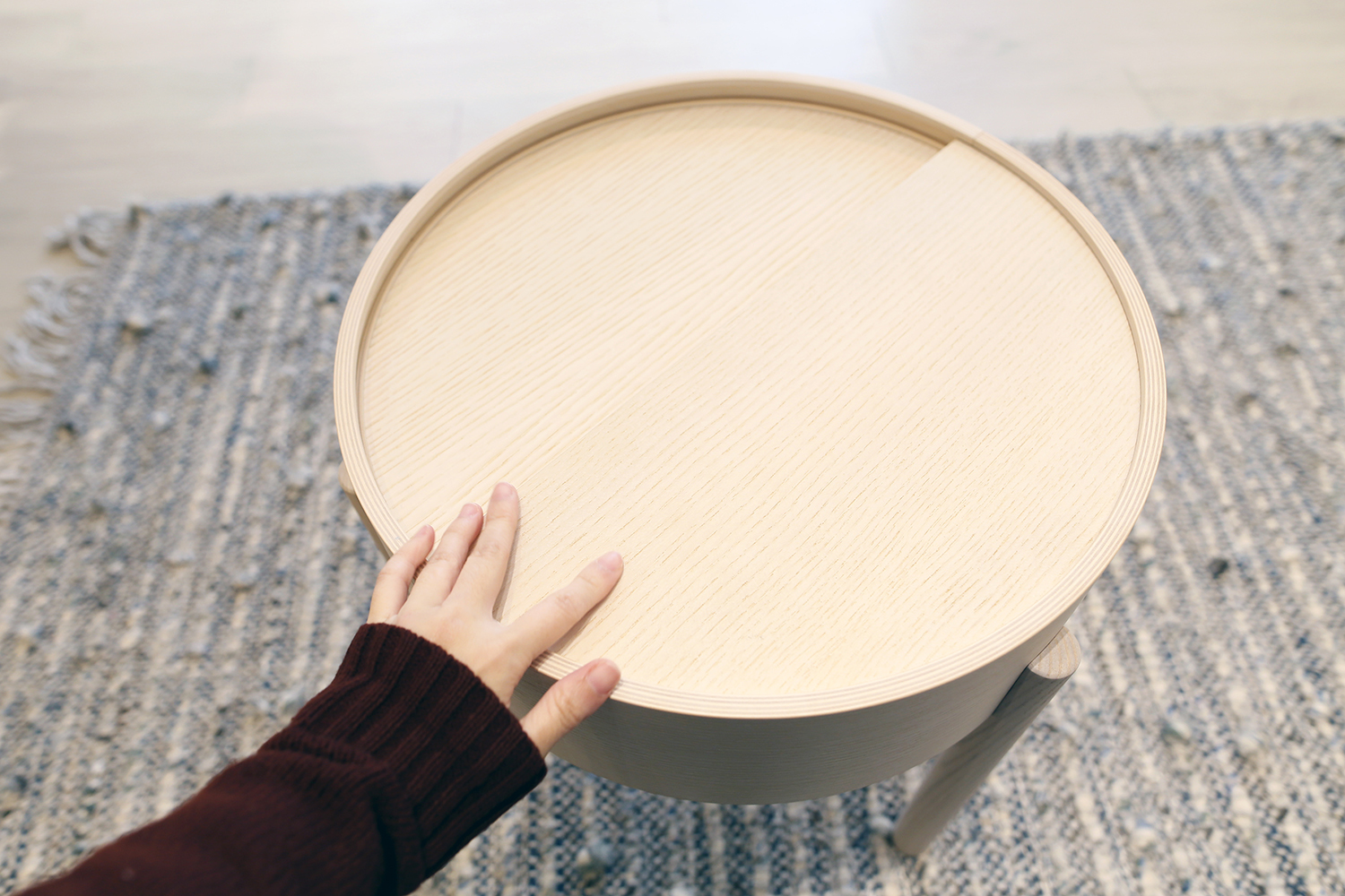 ●輕輕轉動桌面上層的半圓,底部立即出現可收納的空間