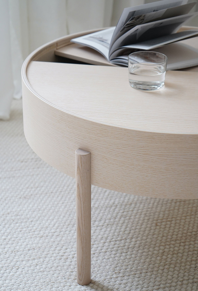 在客廳配置一張結合收納與置物功能的Arc 咖啡桌