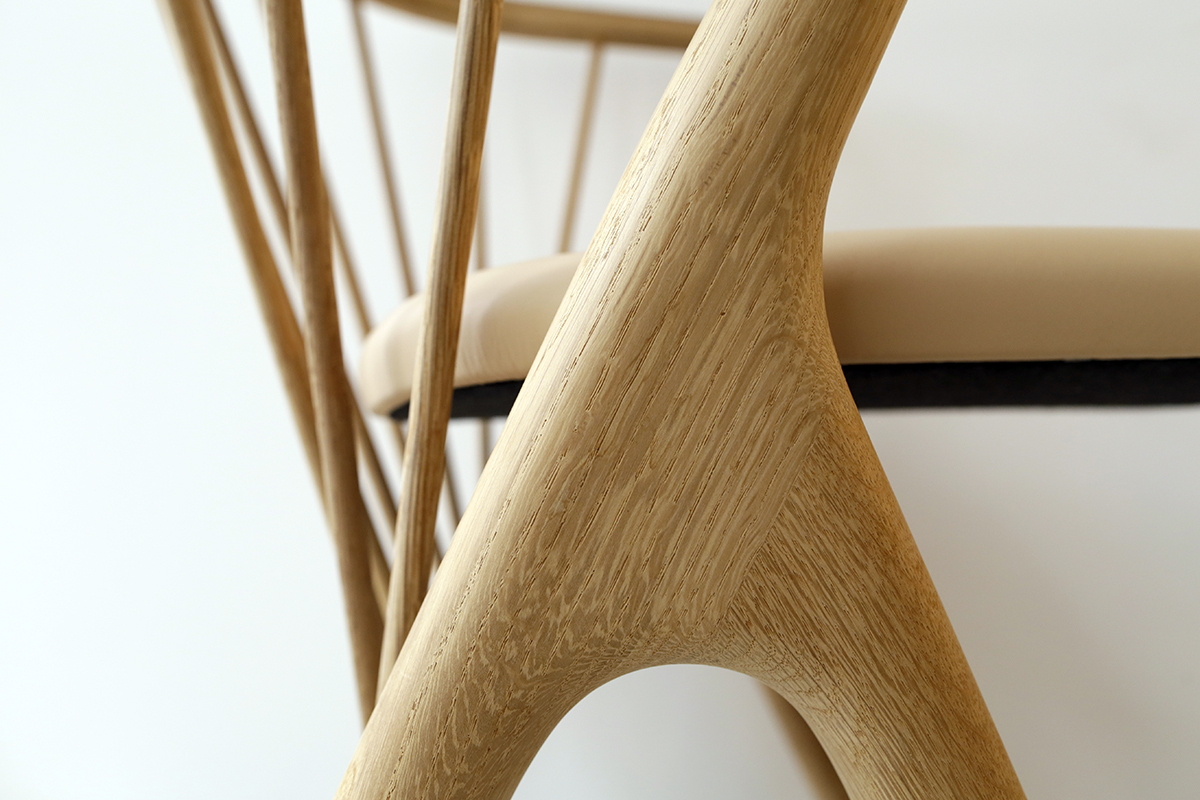 引人注目的豎琴椅背為視覺帶來通透的穿透效果