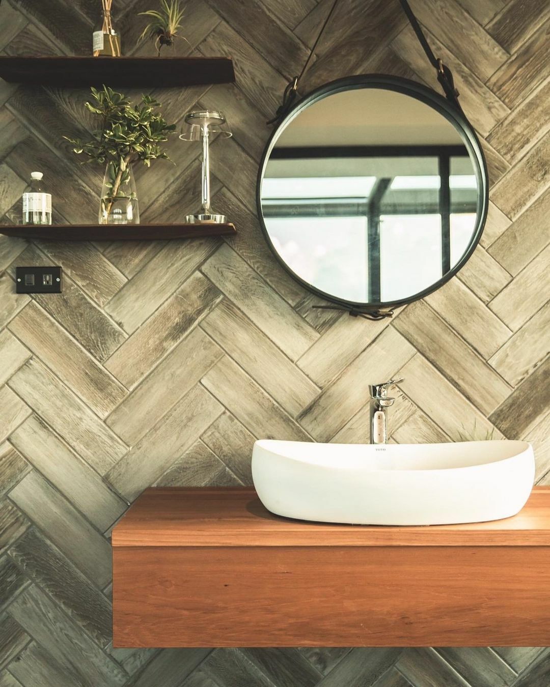 浴室放置的 Adnet 圓鏡