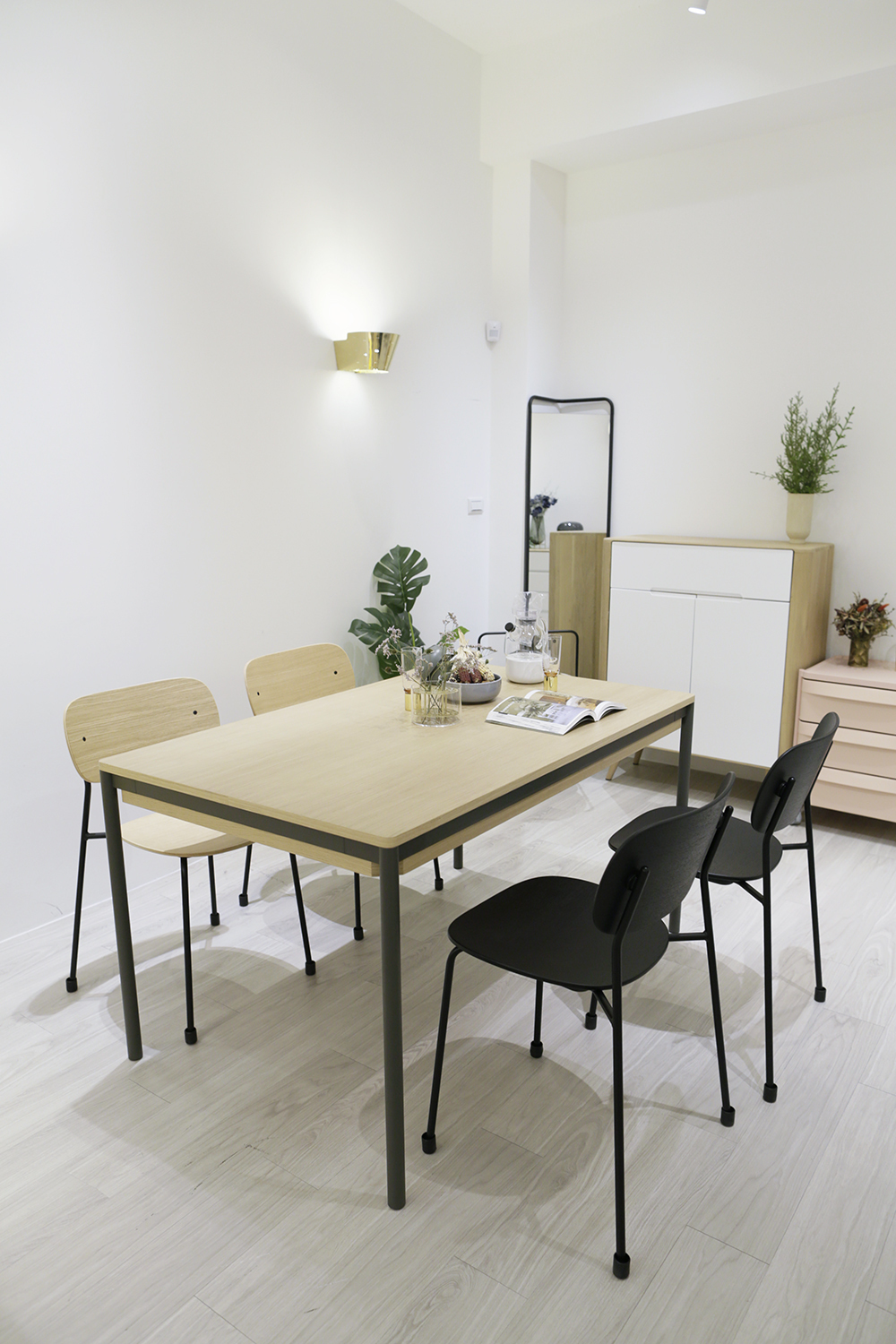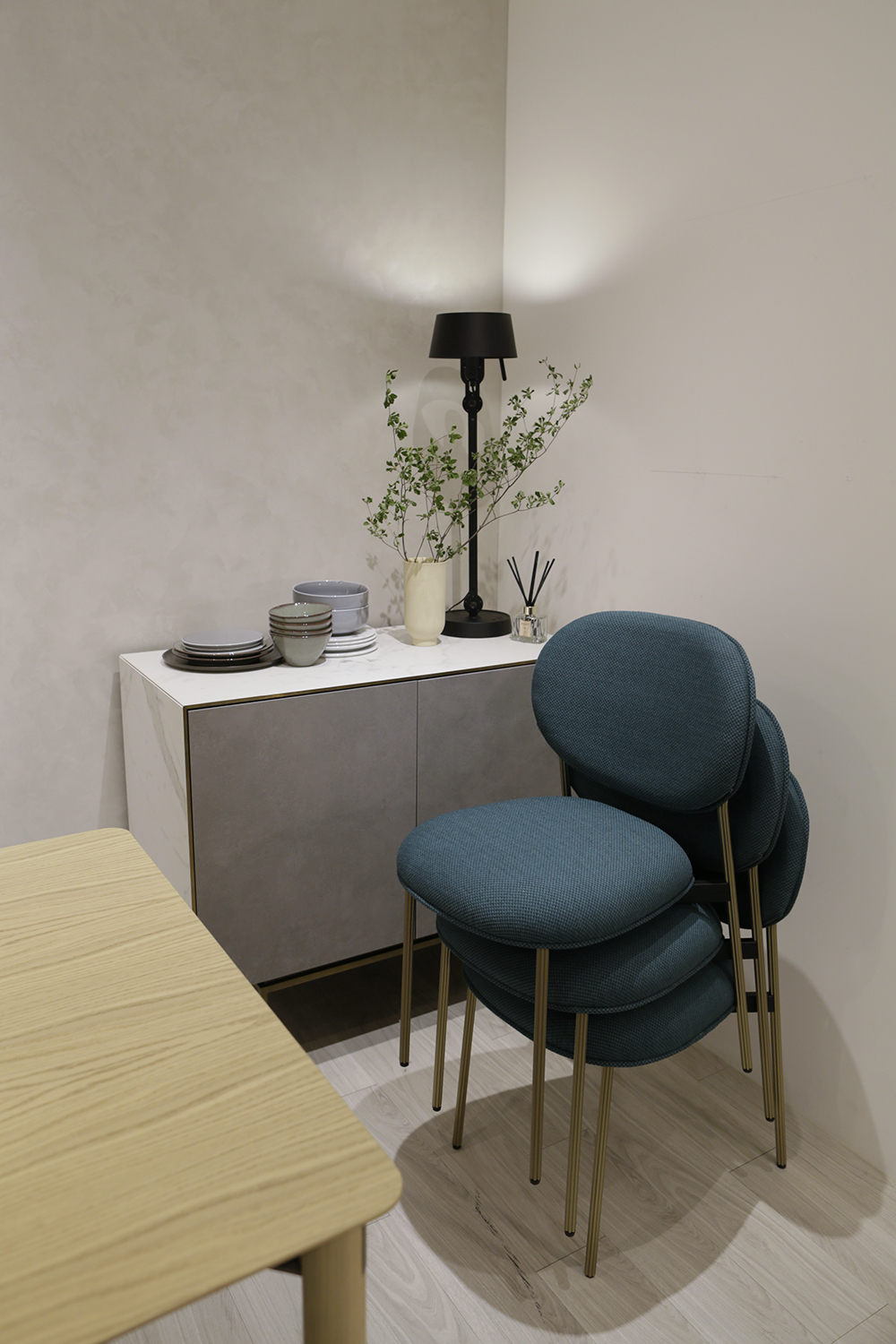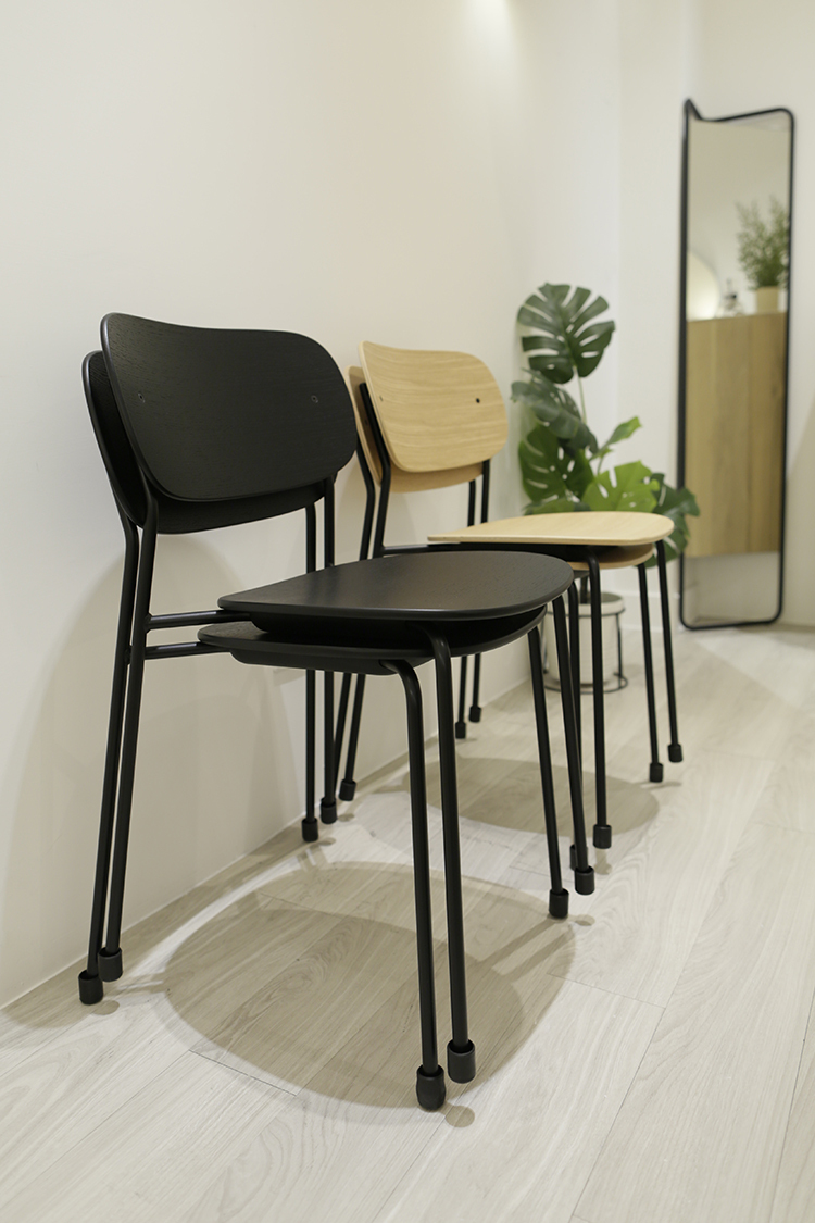 用餐結束後就能將餐椅張張堆疊起來擺放在旁邊