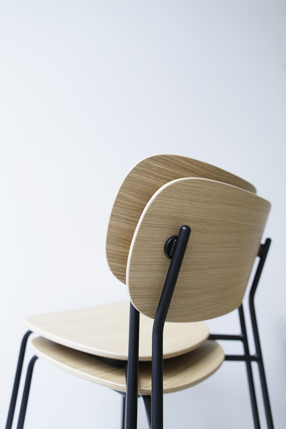 BLUME 2955 餐椅與Co 無包覆扶手餐椅具備可堆疊的設計