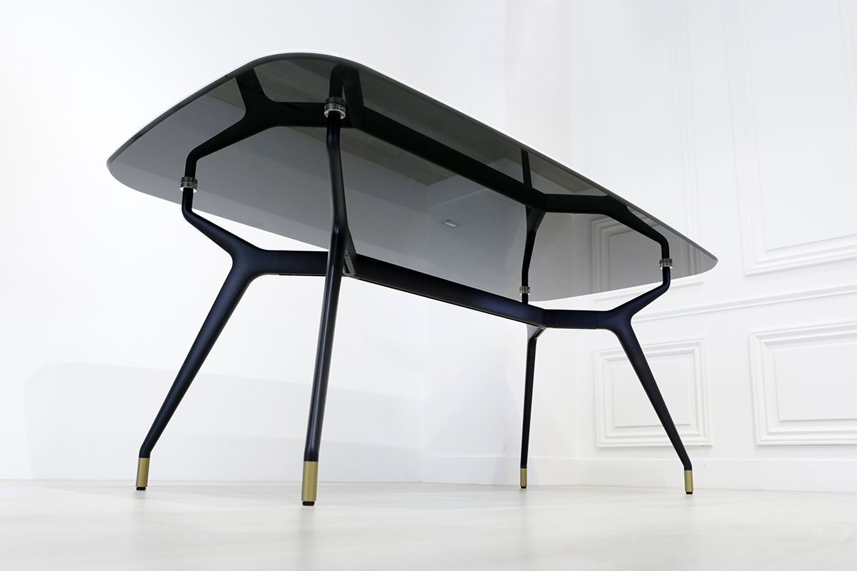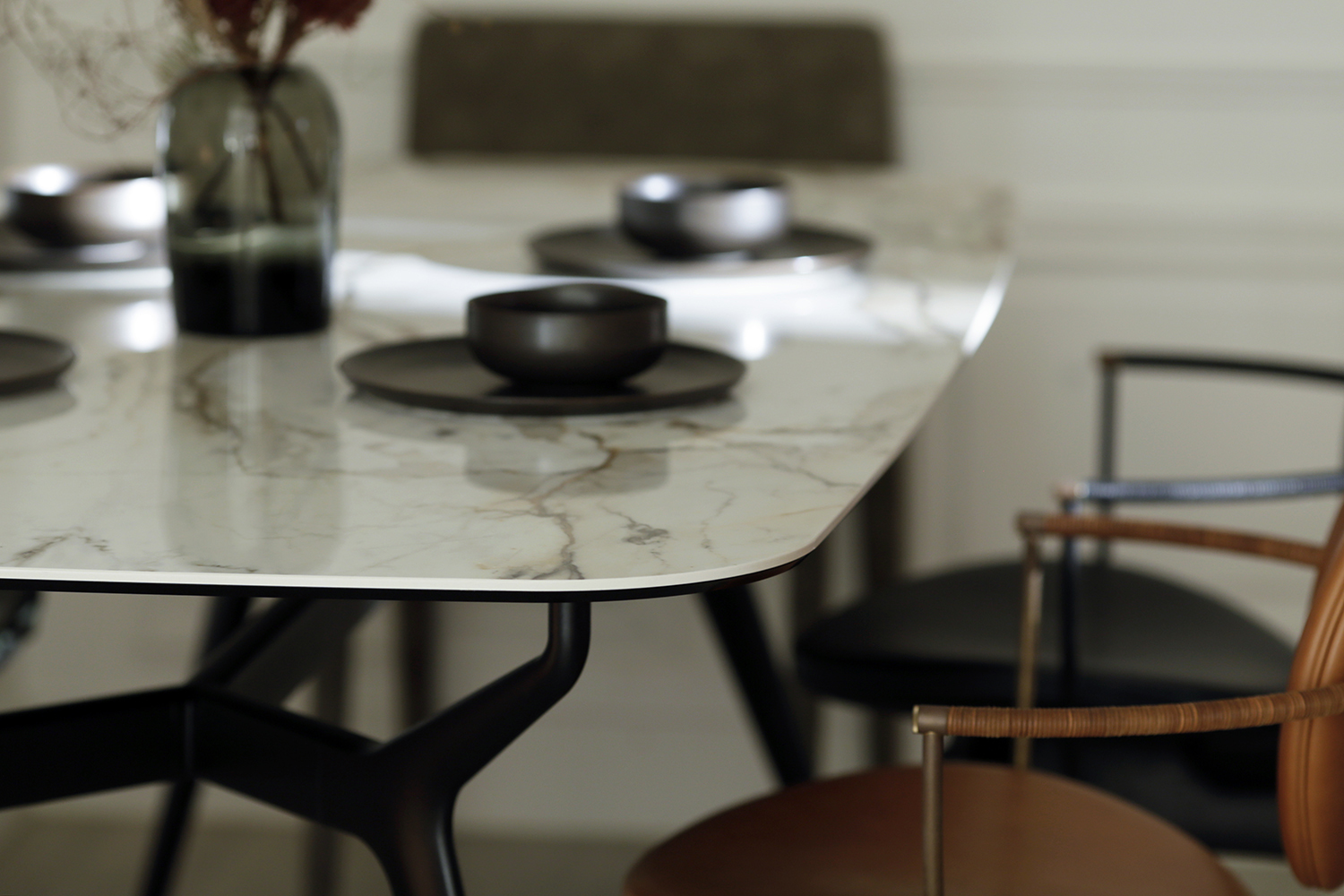 Shaped Arkos 矩形圓角餐桌引人注目的桌腳為鋁壓鑄所製成