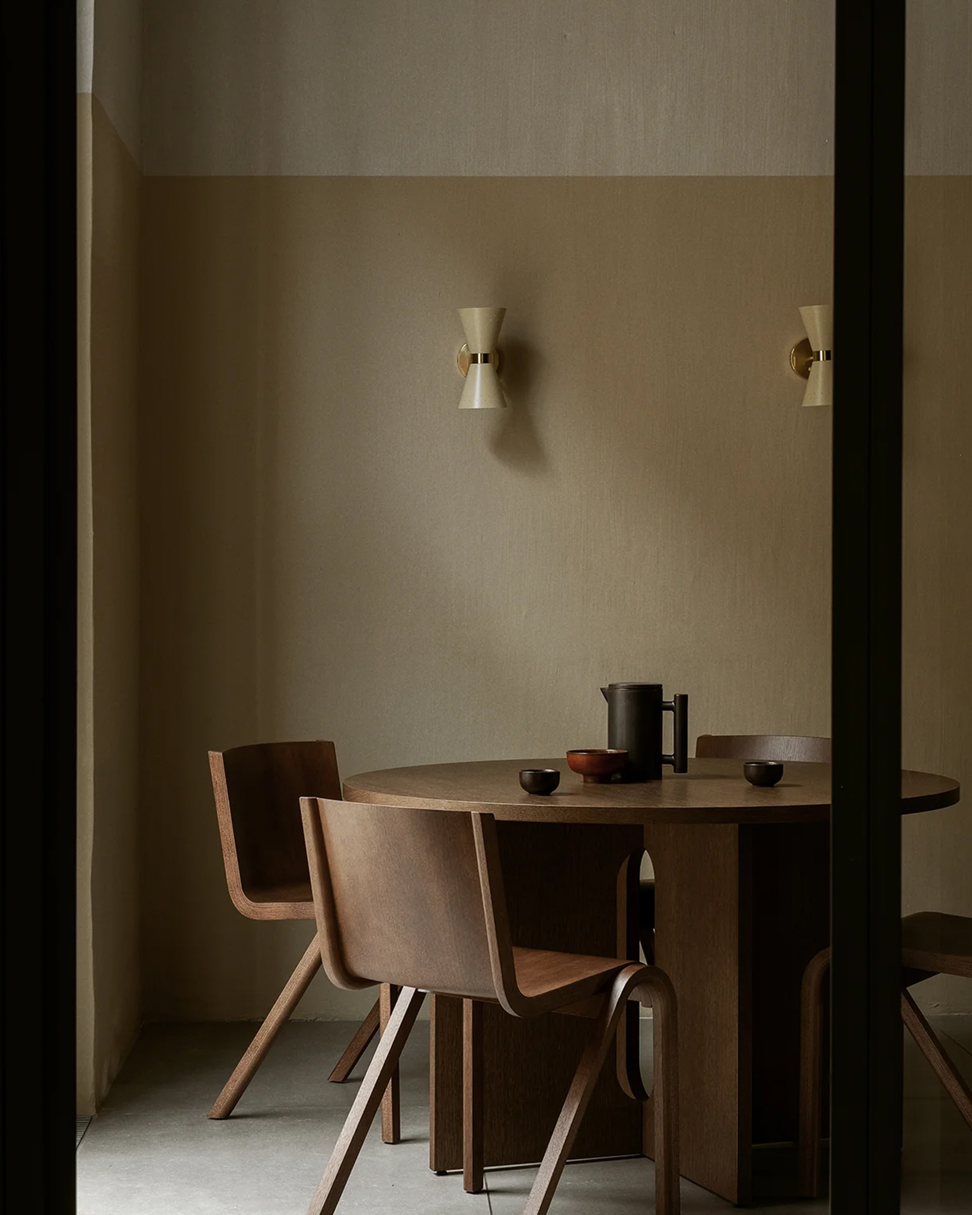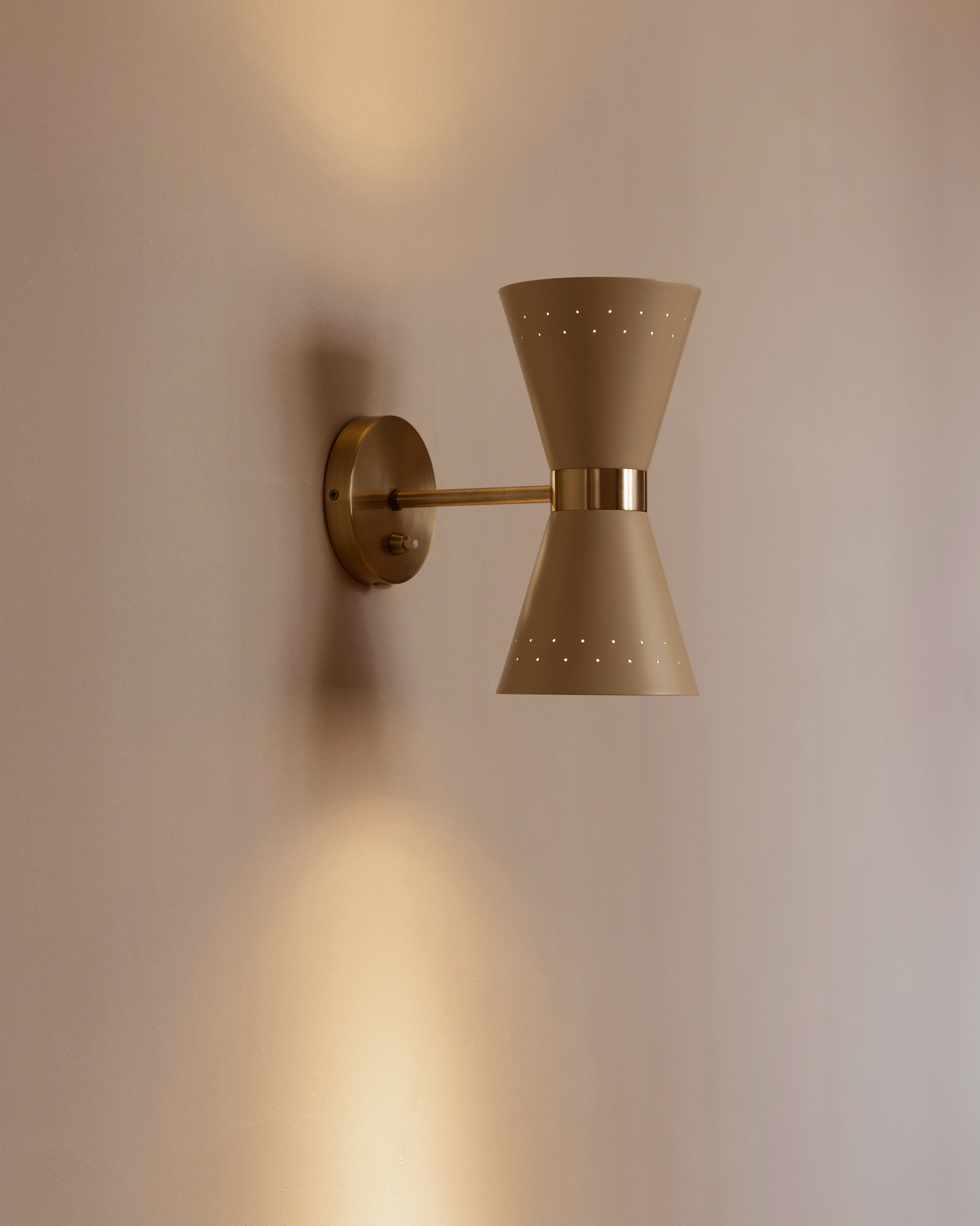 Collector 壁掛式燈,特點是實心黃銅帶具有錐形金屬燈罩,將光線投射向兩個方向。燈罩上下處的小孔可以讓光線穿透,使光線穿過散發出微微的光芒。其名稱表達出此系列的收藏性,完美剖析了本世紀中葉的照明設計。