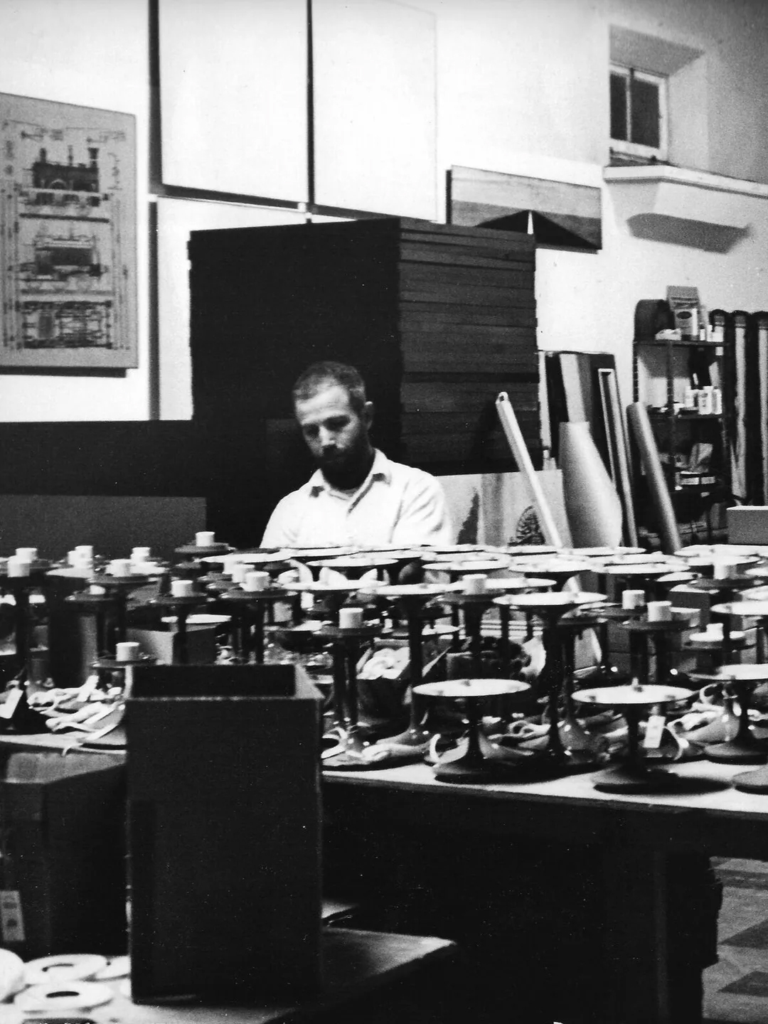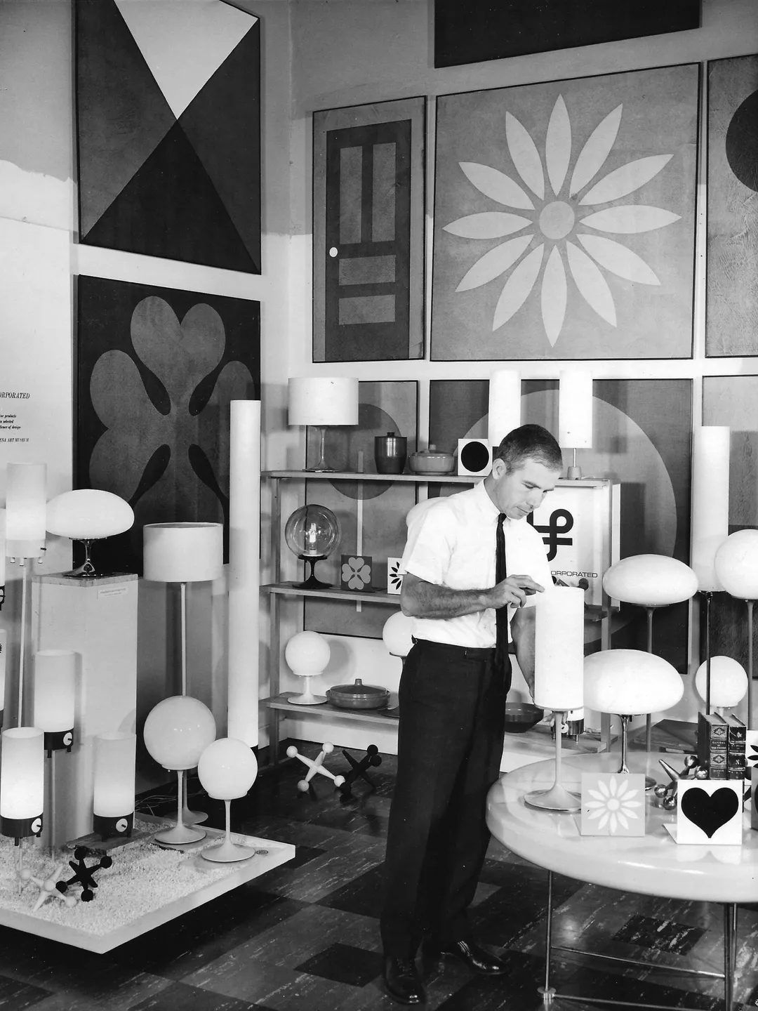 他將五顏六色的鑄鐵底座與透明玻璃頂部進行了搭配,並將多個產品中相互關聯的材料、零件和顏色組合在一起。 他的太空時代「整體外觀」燈具一炮而紅,《工業設計雜誌》授予他的收藏品「年度最佳燈具」的榮譽,美國商務部在蘇聯、南斯拉夫和伊拉克展示了他的Stemlite系列,作為美國設計的典範。