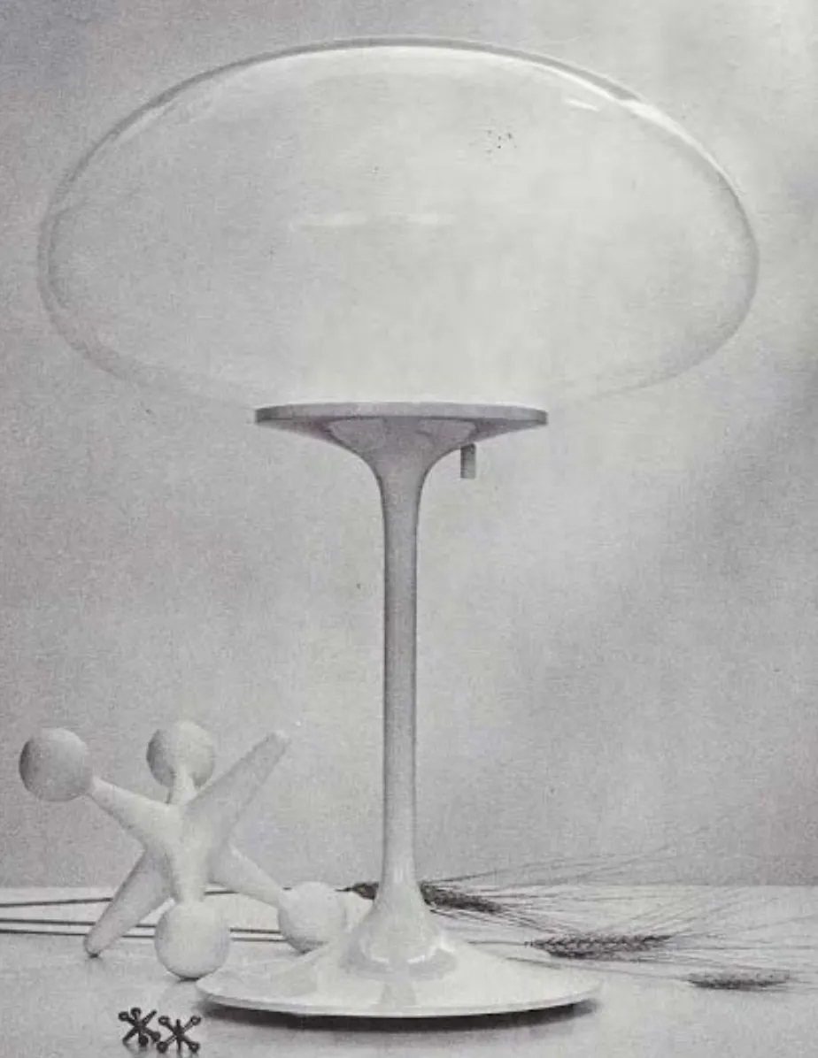 他吸收了這些想法,開發出新的照明規風格,將燈架、燈泡和燈罩組成一個簡單但大膽多彩的「洛杉磯太空流行」形式,充滿了未來感。