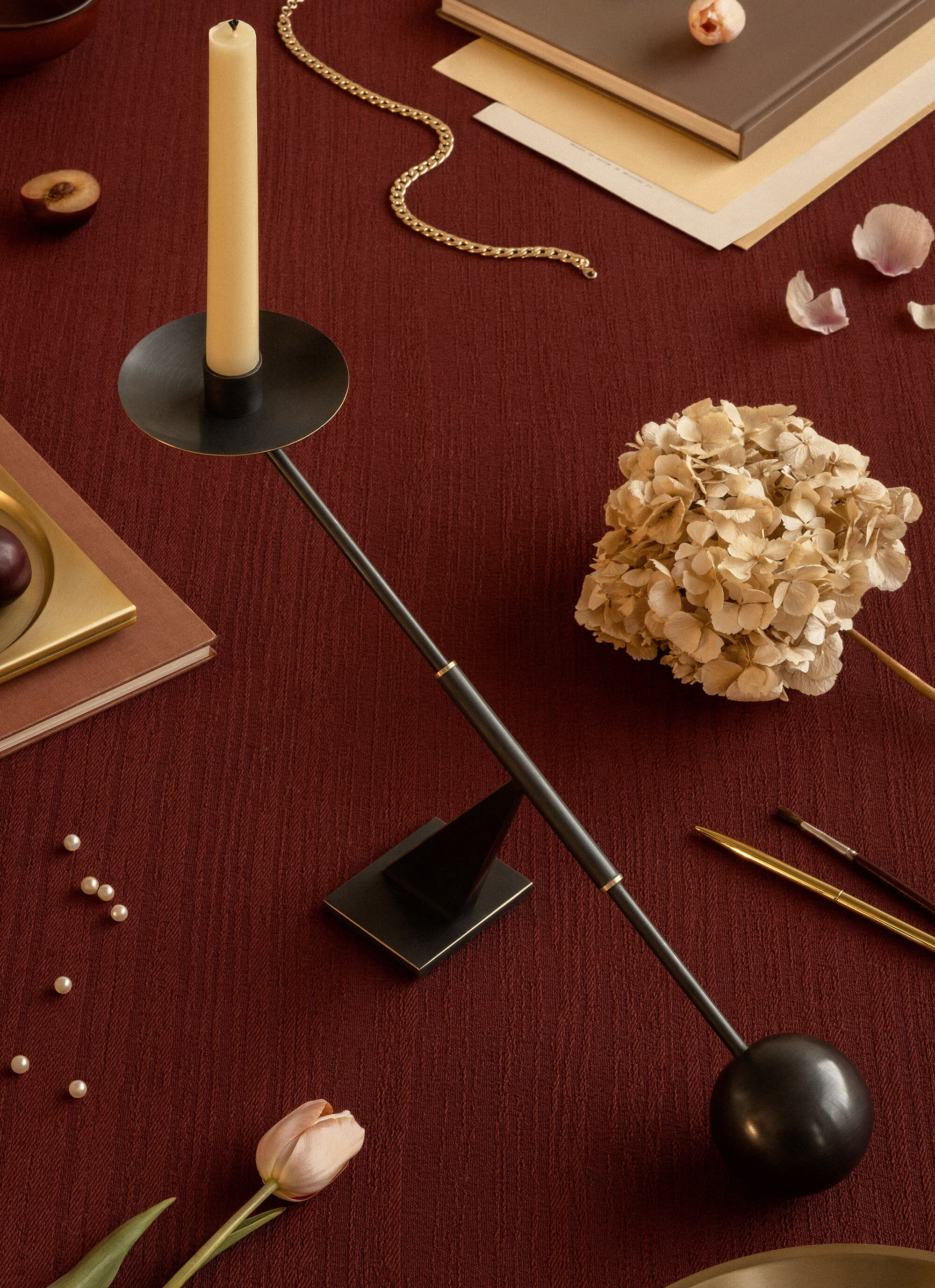 Interconnect 燭台是一款比例誇張、大膽且富有啟發性的裝飾品,由 Colin King 所設計。作為舒適燭光的來源,以簡單幾何形狀為特色,利用圓形球體、角度和線條所組成,它們結合在一起巧妙地展現出吸睛的視覺設計。拋光黃銅、古銅色黃銅或噴漆鋼的材質,融合雕塑般的外型,營造了獨特的藝術氛圍。