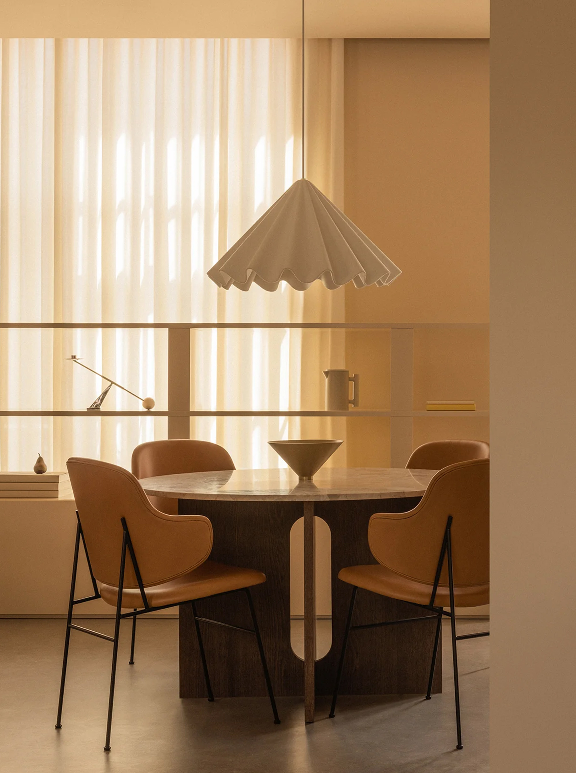 Androgyne 系列以其俏皮而優雅的輪廓而著稱,最初是作為前展廳咖啡館邊桌設計的,作品很快就投入生產以適應更多的受眾。居住在哥本哈根的挪威建築師兼設計師 Danielle Siggerud 的設計,將男性與女性氣質融合中性化,正是這個不斷擴大此系列名字的由來。此系列有邊桌、休閒桌和餐桌,以簡約的輪廓和精緻的材料為特色從引人注目的大理石紋理到角礫石的迷人圖案,以及柔和溫暖的天然橡木,讓人能根據所需的喜好方式進行混合和搭配。