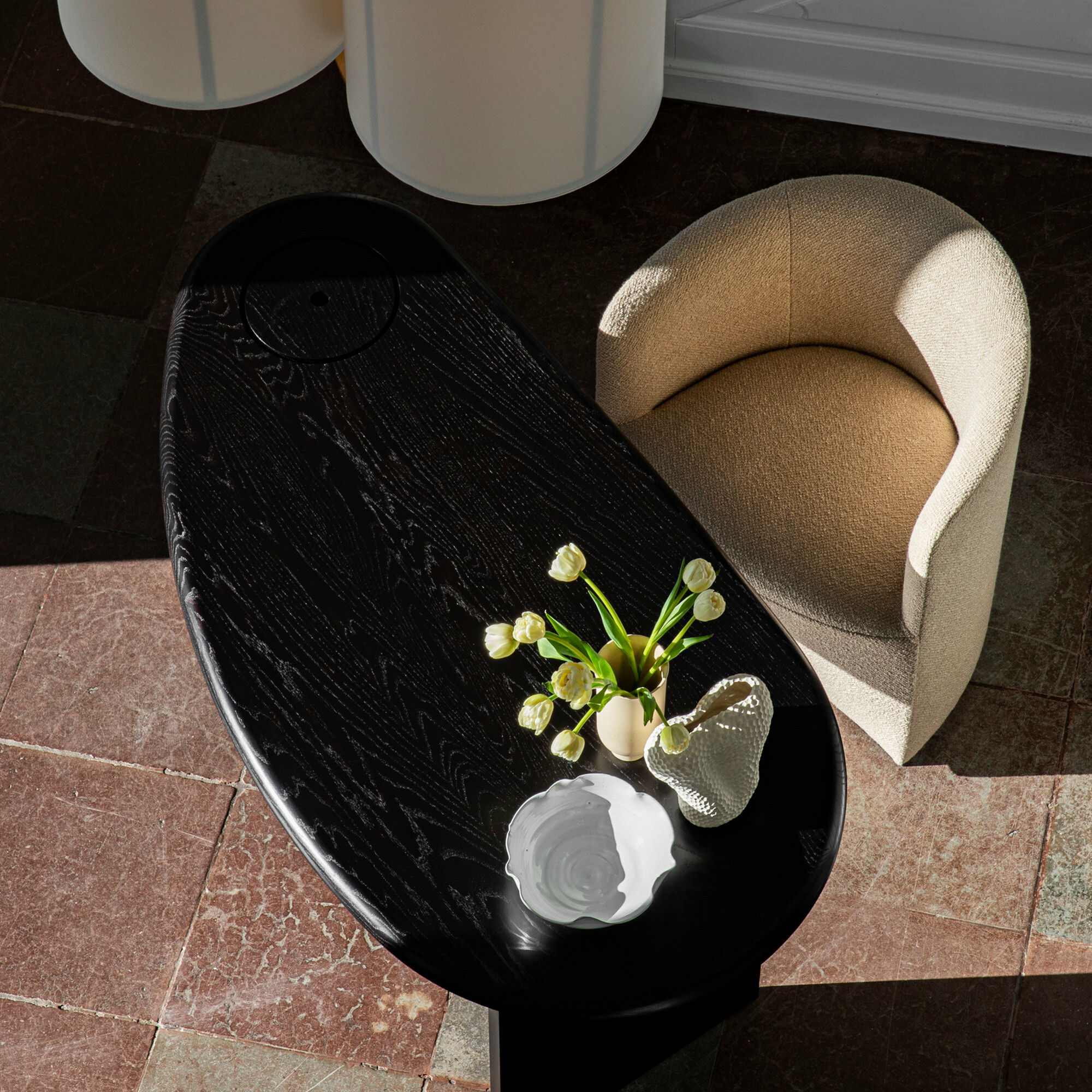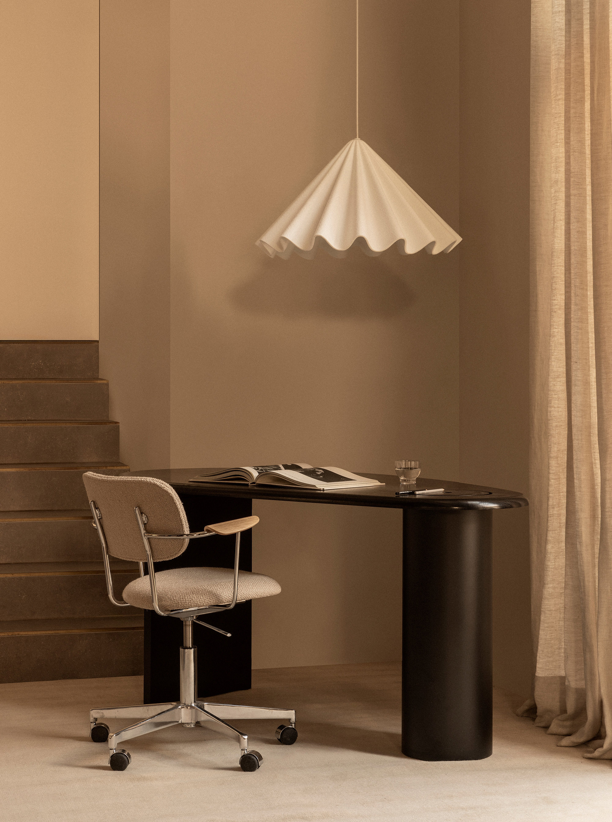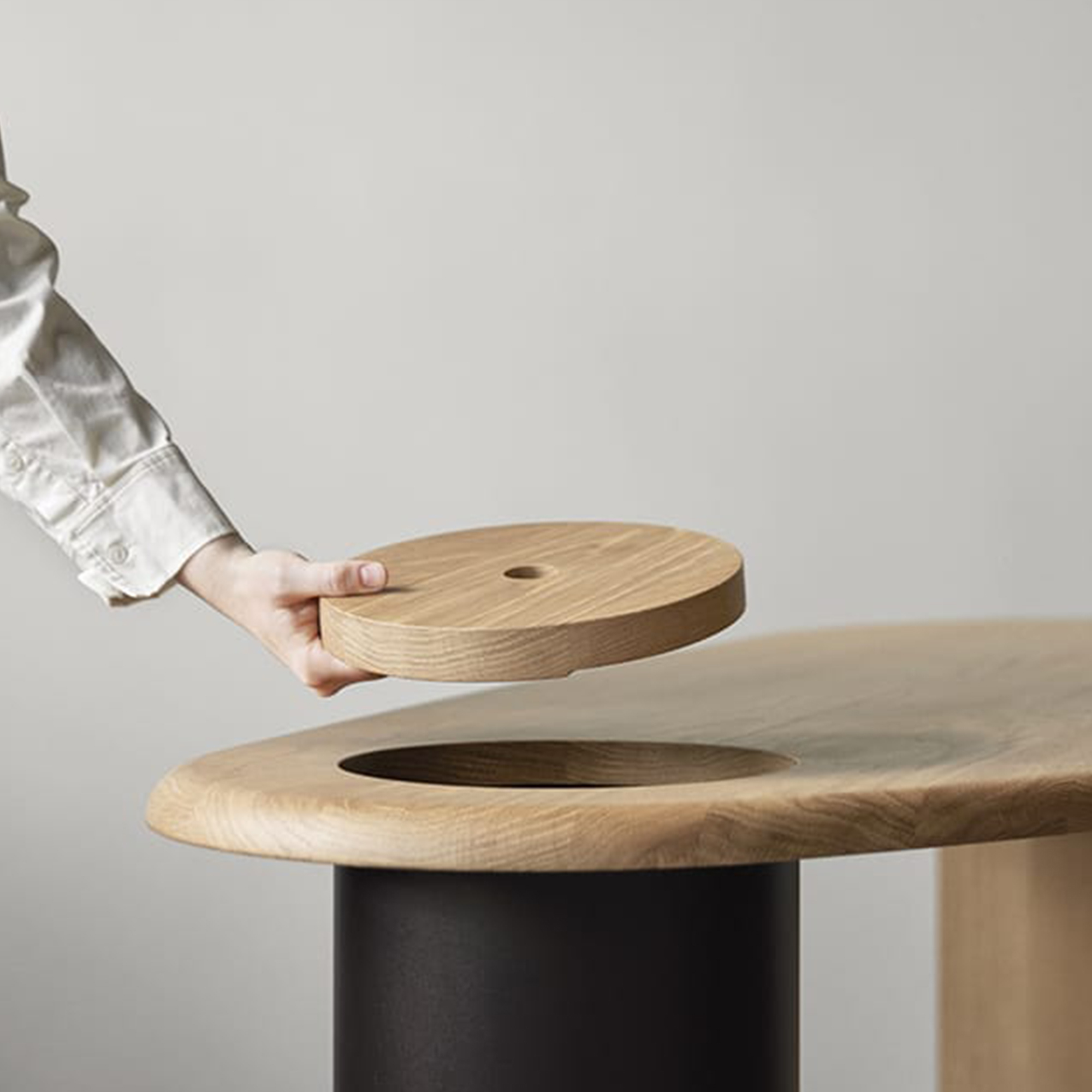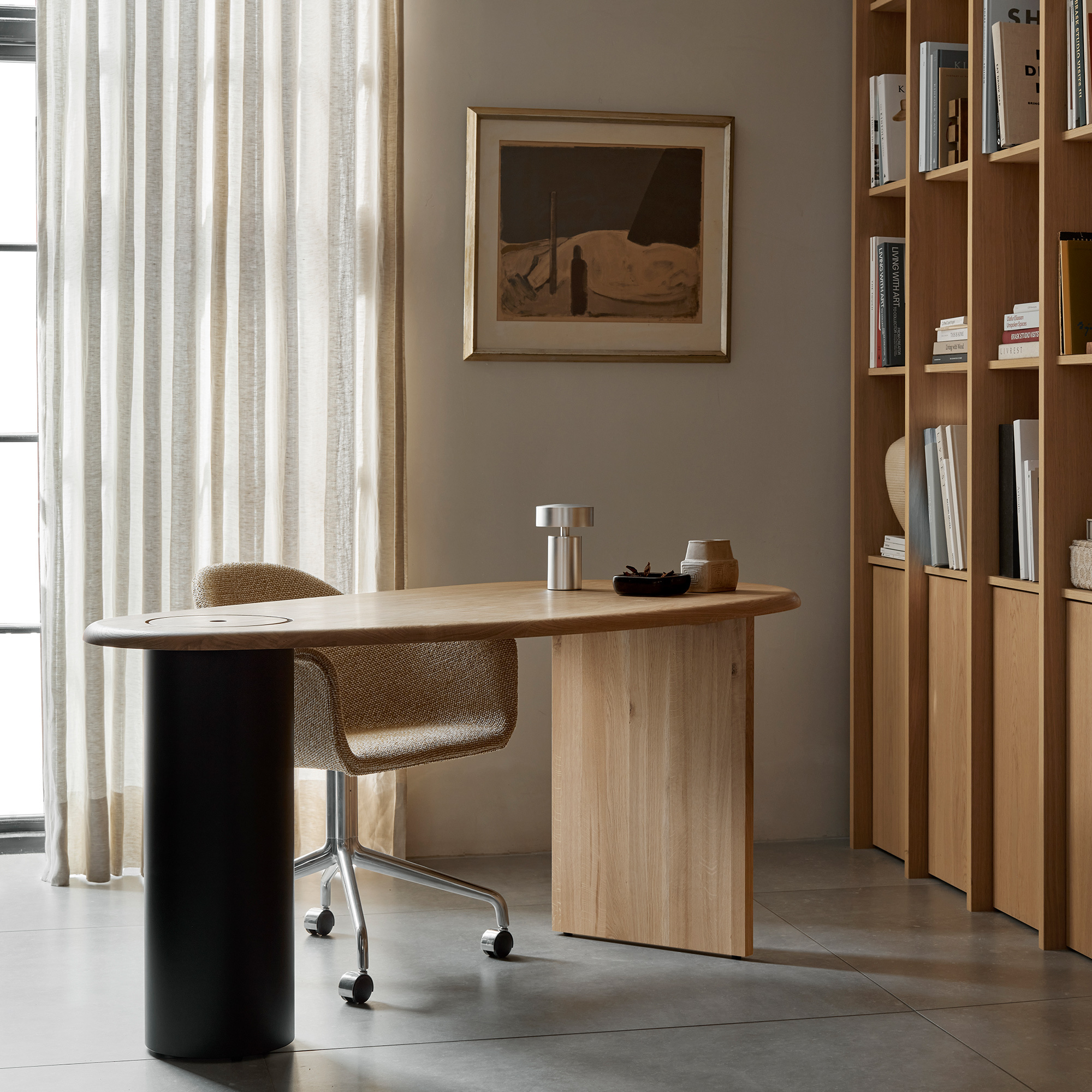The Eclipse Desk 辦公桌是對材料和形式的慶祝。 Fred Rigby 的設計以其凹凸的形狀命名,類似於天空中的照明通道,其獨特的不對稱輪廓,為有機形狀的設計增添了戲劇感,令人忍不住觸摸。寬大的桌面採用實心深色橡木製成,桌腳為黑色漆,桌面配有圓形蓋子可掀開,內部有著隱藏的儲存空間,讓桌子表面可以保持整潔。