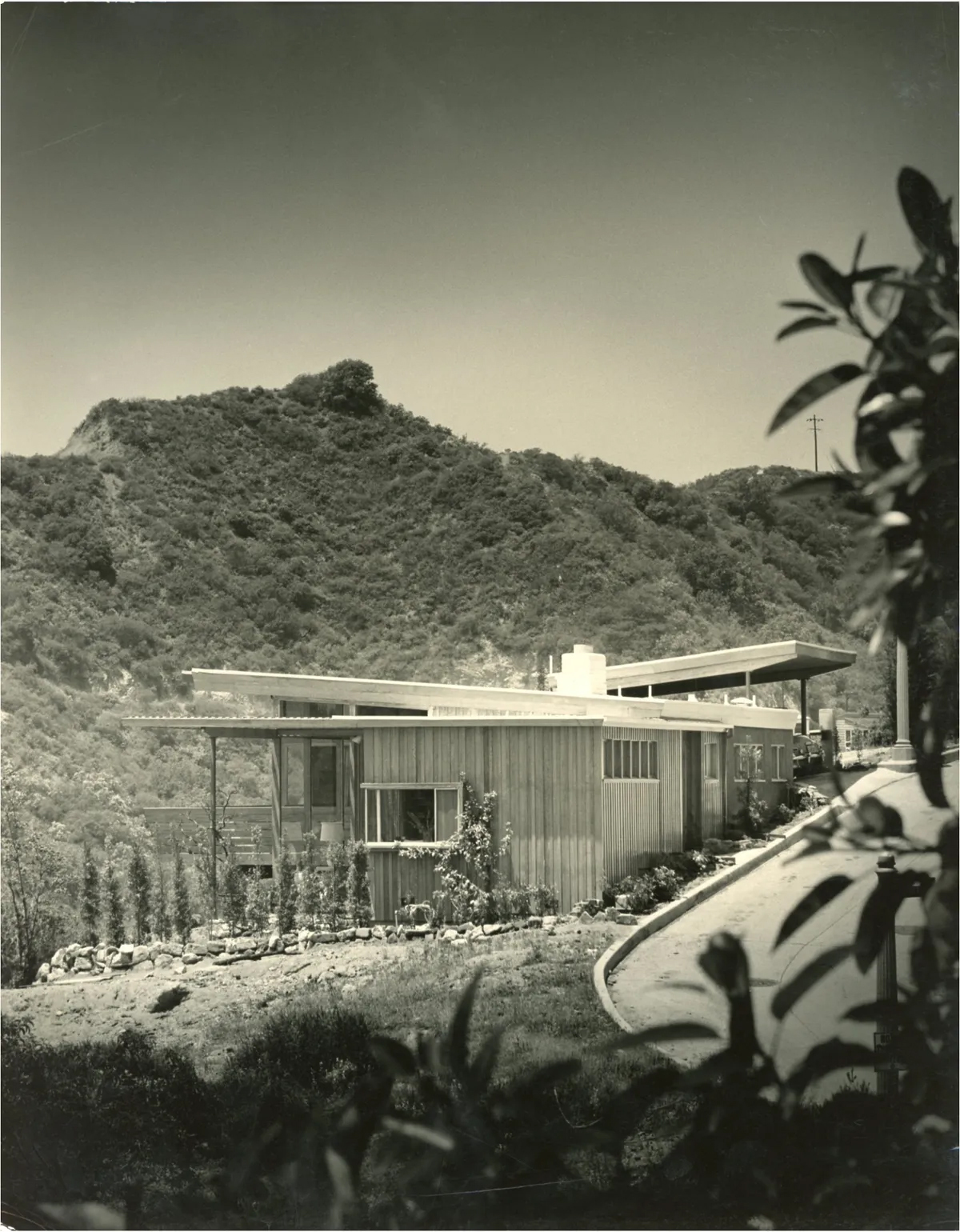 克萊爾克雷斯特大道9376號外觀,加利福尼亞州比佛利山莊,1956-57, 由Greta M設計, 格羅斯曼。 約翰·哈特利拍攝。