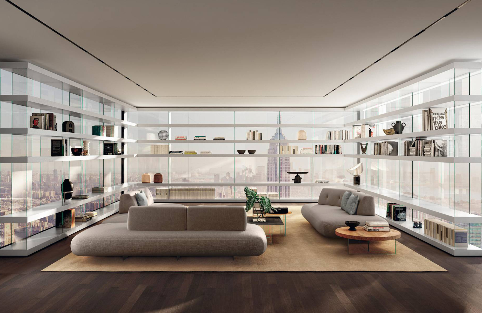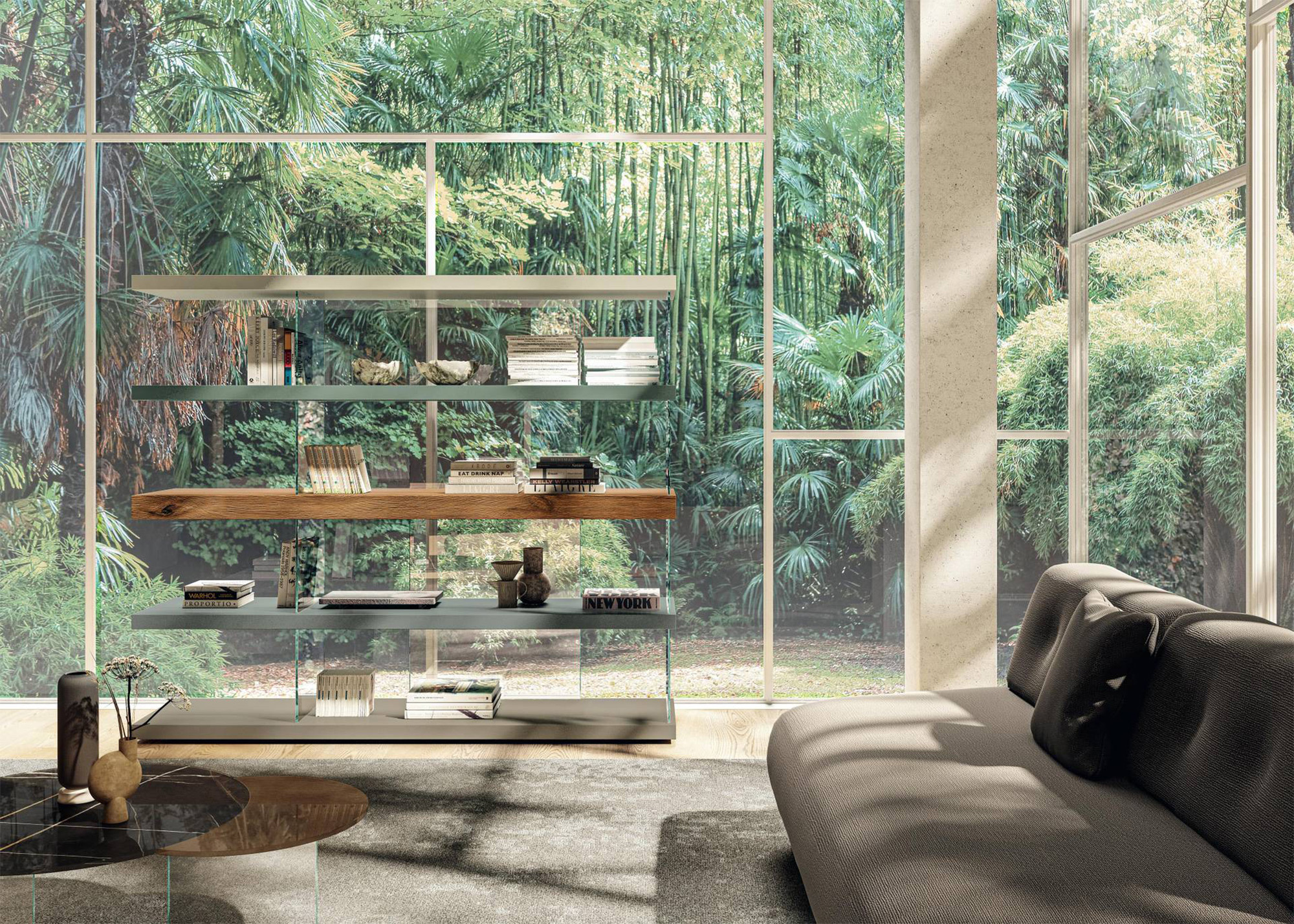 大部分對於書架刻板印象,規矩獨立的個體呆板緊靠於牆上,而 Air 系列的設計顛覆了我們對於書架的想像。簡約俐落的線性結構,與鋼化玻璃的異素材組合,由超透明玻璃微妙垂直結構支撐,玻璃支架上的層架彷彿漂浮在半空中,利用書架雙面性,玻璃透視引光入室,放置在大片落地窗前又能享受後方風景微妙的變化,如畫的視覺饗宴是生活場景迷人之處。