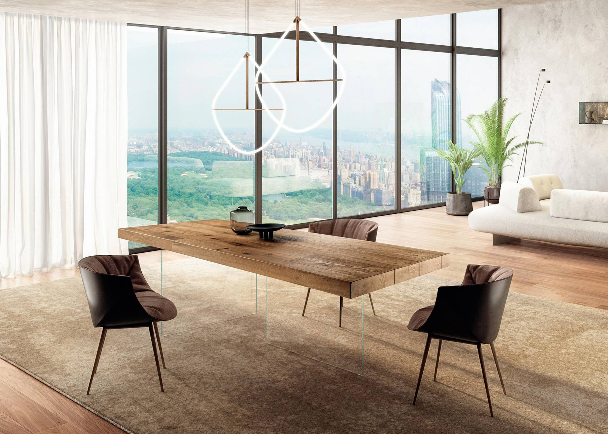優雅俐落視野無限,專為生活空間而設計的桌款,似乎漂浮在空中視覺一眼即令人驚艷,幾乎看不見的玻璃桌腳支撐著桌面,使桌面似乎懸浮在半空中般如此輕盈,超透明的鋼化玻璃營造出一種通透的感覺。