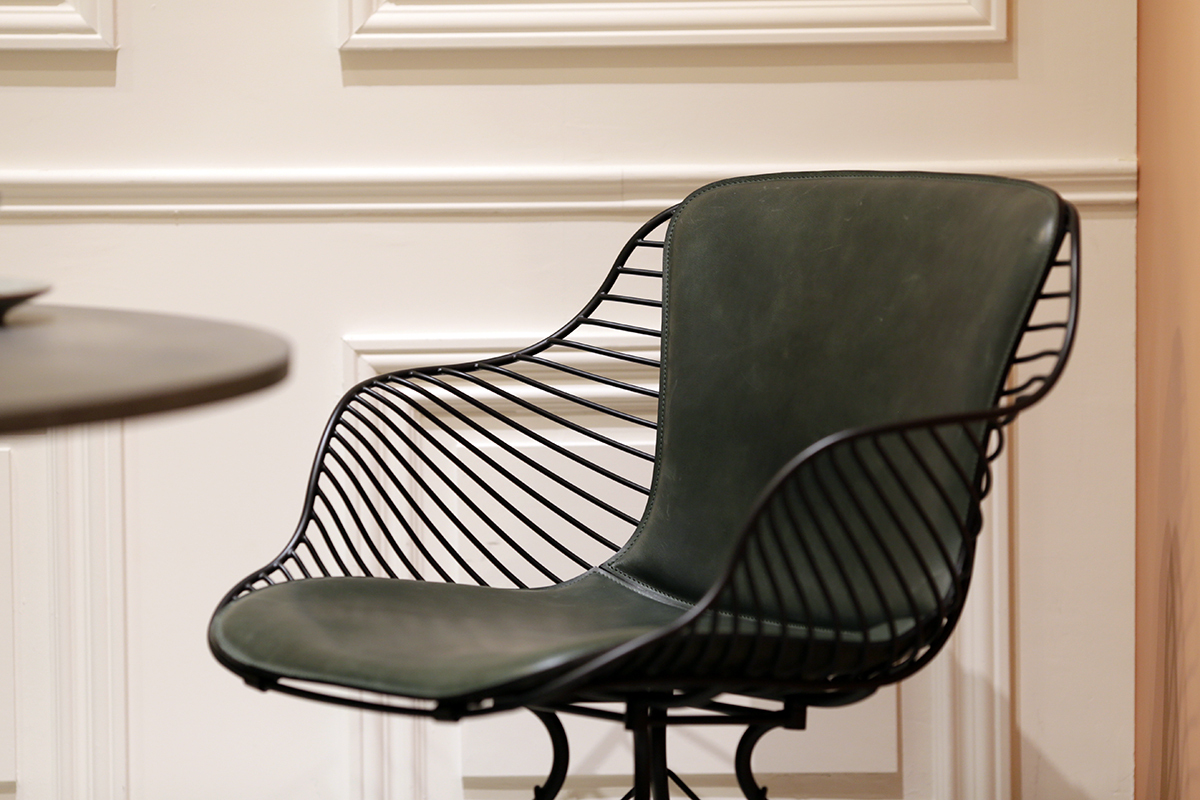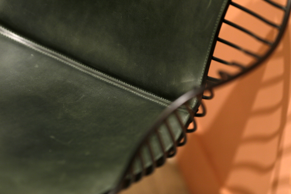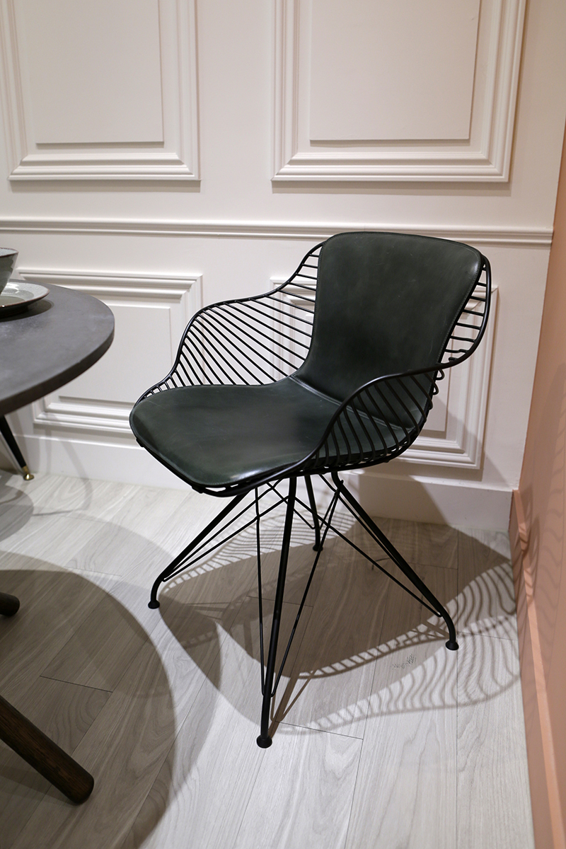 從馬鞍鞍座製作的過程中獲得靈感而製作出Wire Dining Chair 餐椅