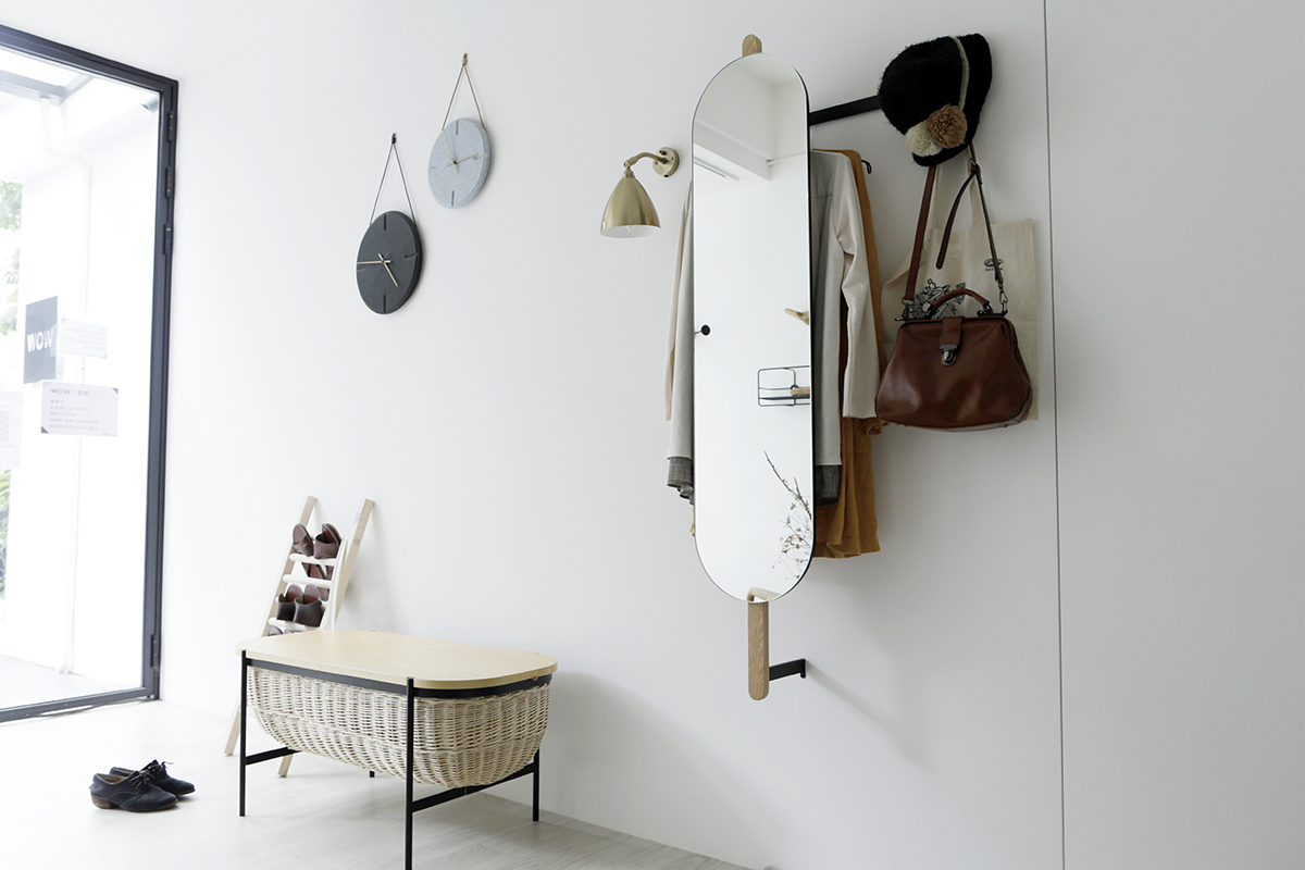 如果想在空間精簡的玄關同時擺放鏡子跟衣帽架