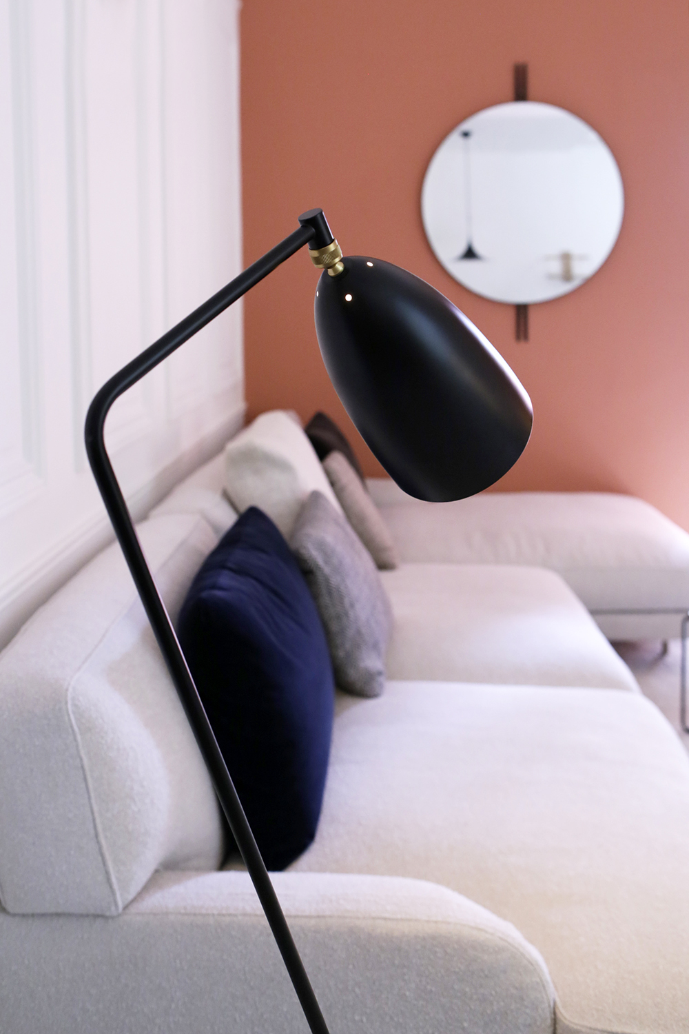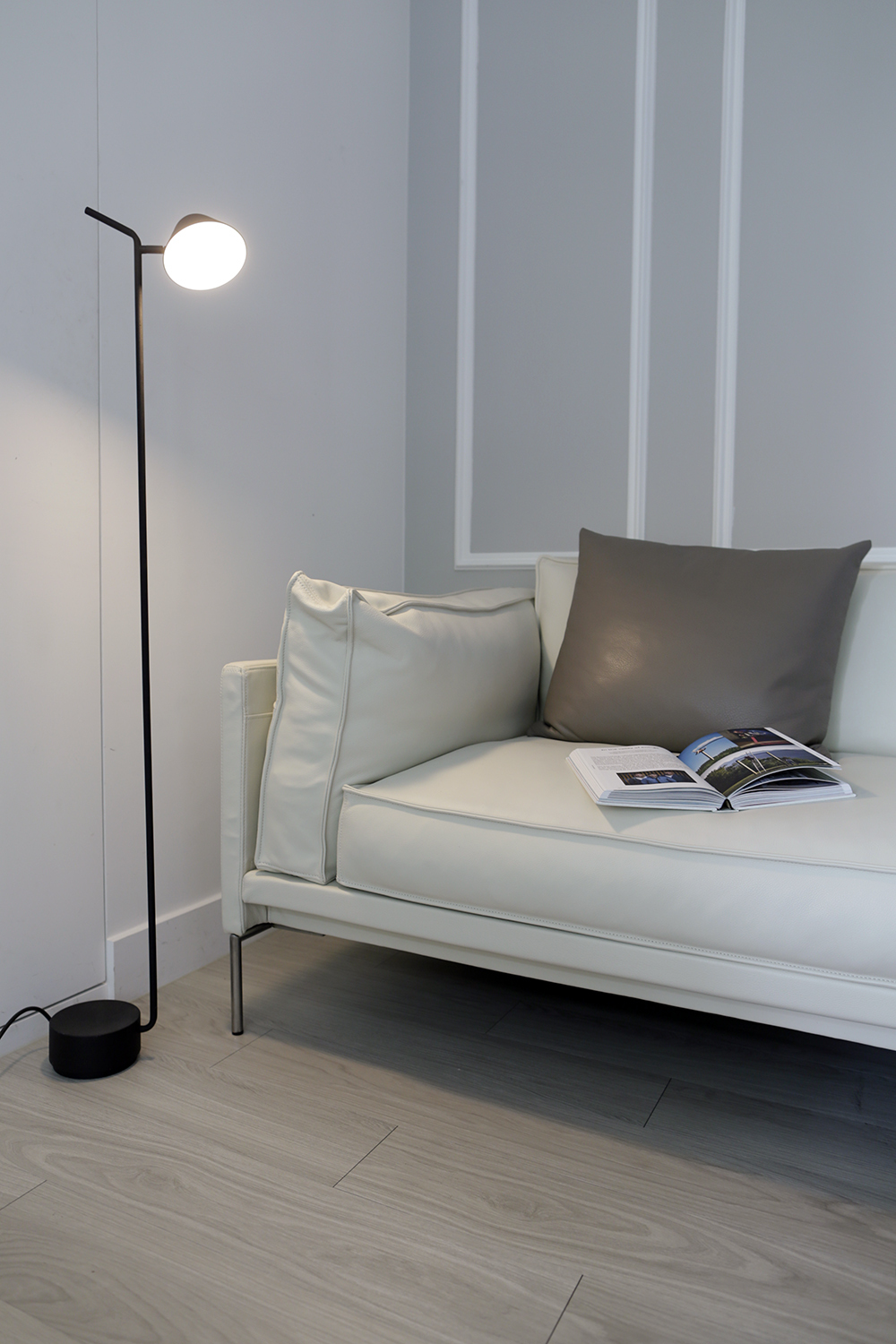 Peek 立燈由穩重的底座、纖細的燈桿及圓弧燈罩所構成
