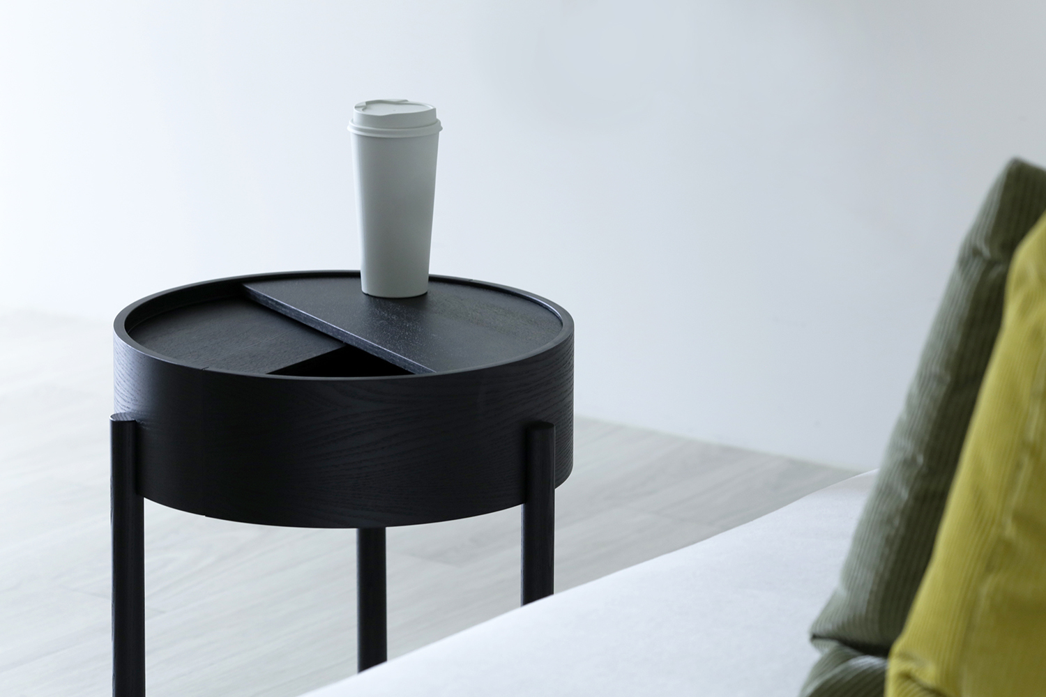 只需將桌面旋轉半圈即刻從咖啡桌轉變成臨時的儲櫃