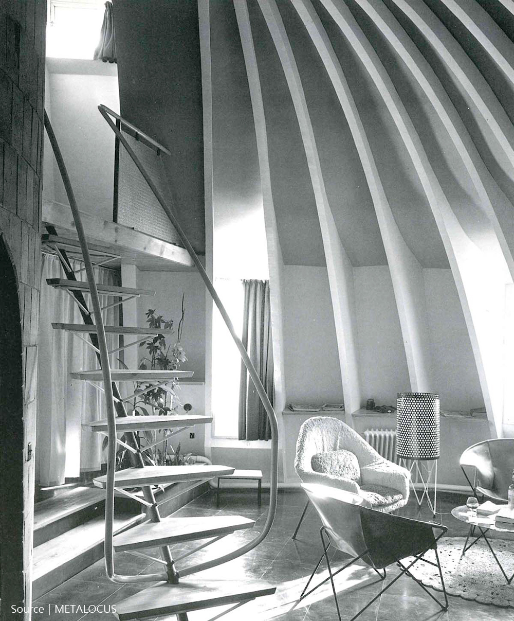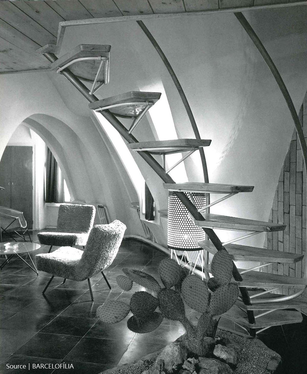 1955年,Corsini 受委託改造米拉之家的閣樓,將這個原本作為洗衣房和儲藏區的空間轉變為現代化的公寓。在這過程中,Corsini 專門設計了包括 PD2 立燈在內的一系列家具,靈感來自於米拉之家的拱形天花板和煙囪的獨特外觀。PD2 立燈的底座模仿了天花板的曲線,而燈罩則融合了建築中煙囪的圓柱形和穿孔細節,完美展現了 Corsini 對簡約設計的詮釋。