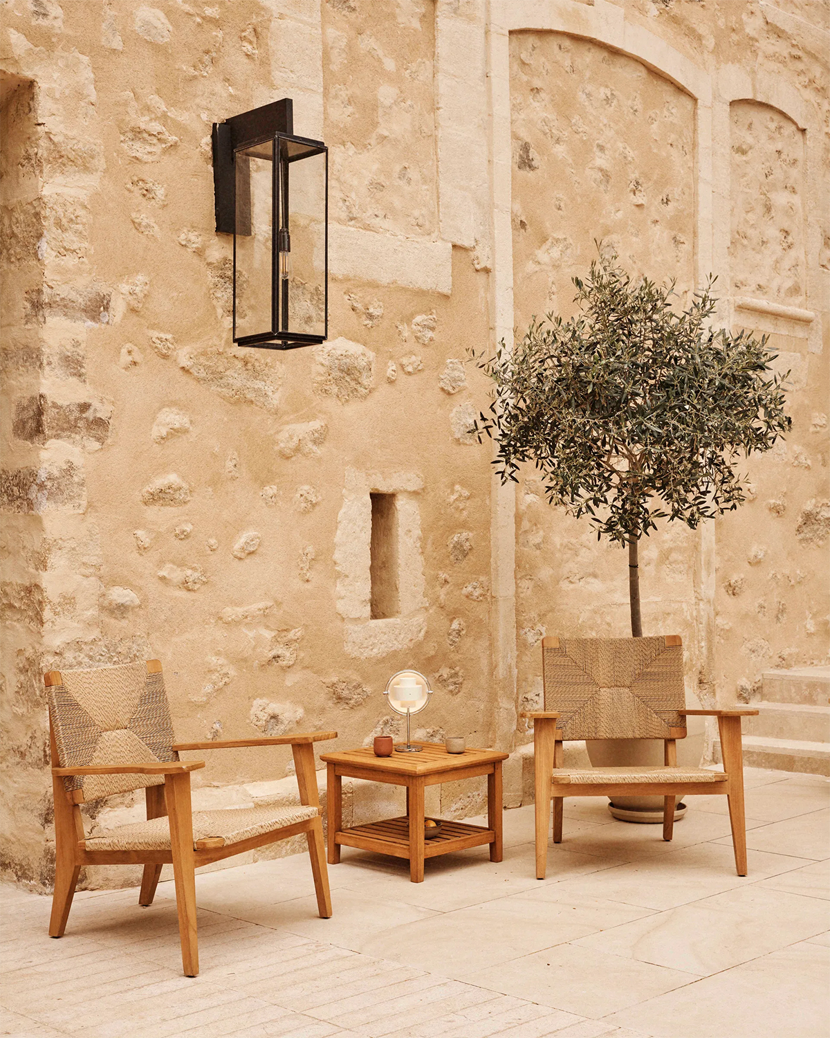F-Chair 的經典設計與修道院的古老魅力完美融合。這款由 C-Chair 演變而來的休閒椅,保留了錐形後腿並透過現代化的線條和木製技術,增強了整體質感。其加寬的編織座椅採用柚木和耐風雨的編織繩製成,適合酒店的各種空間使用。F-Chair 為這座結合歷史與現代的修道院增添了一份優雅且悠閒的氛圍。