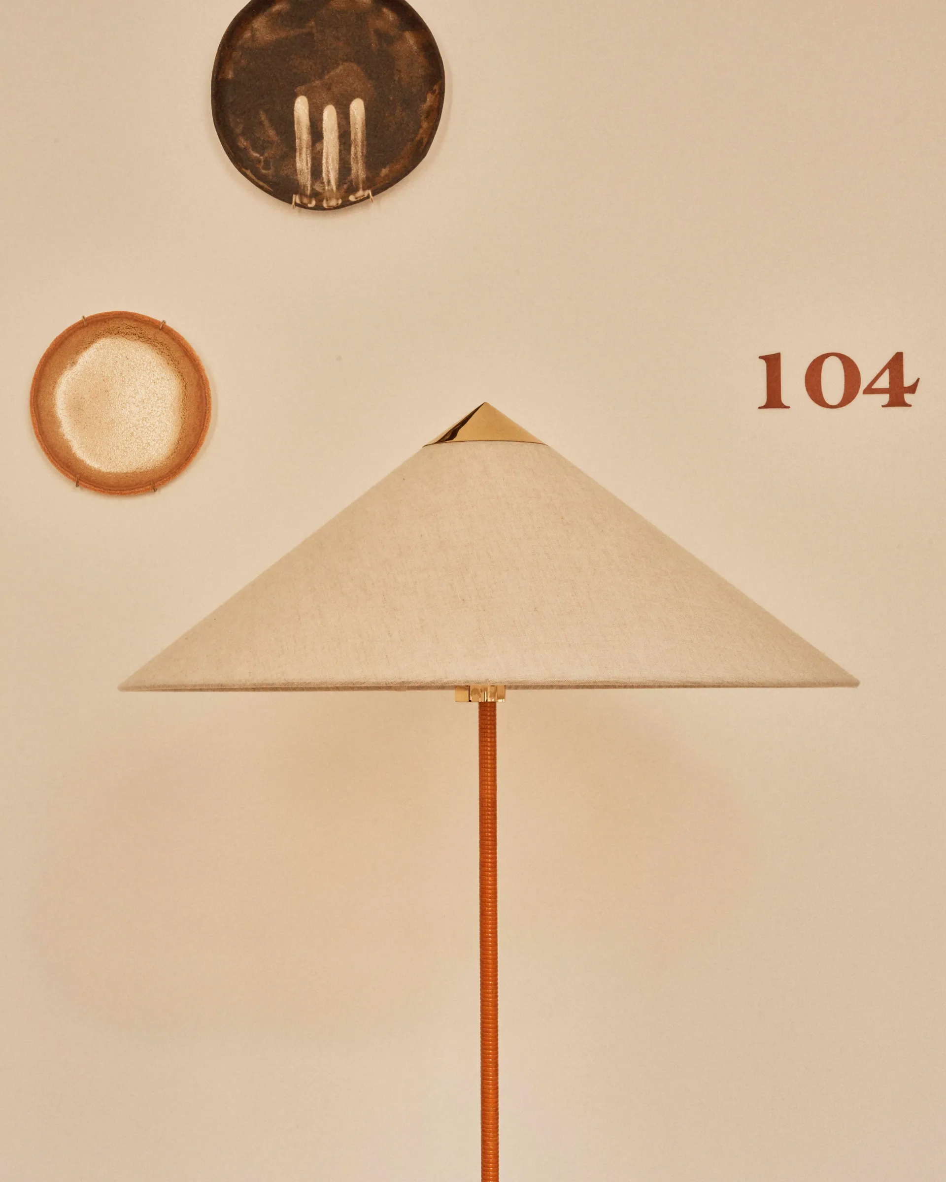 9602 Floor Lamp 也被稱為「中式帽子」,以其優雅通透的燈罩和藤條覆蓋的燈座為特色。