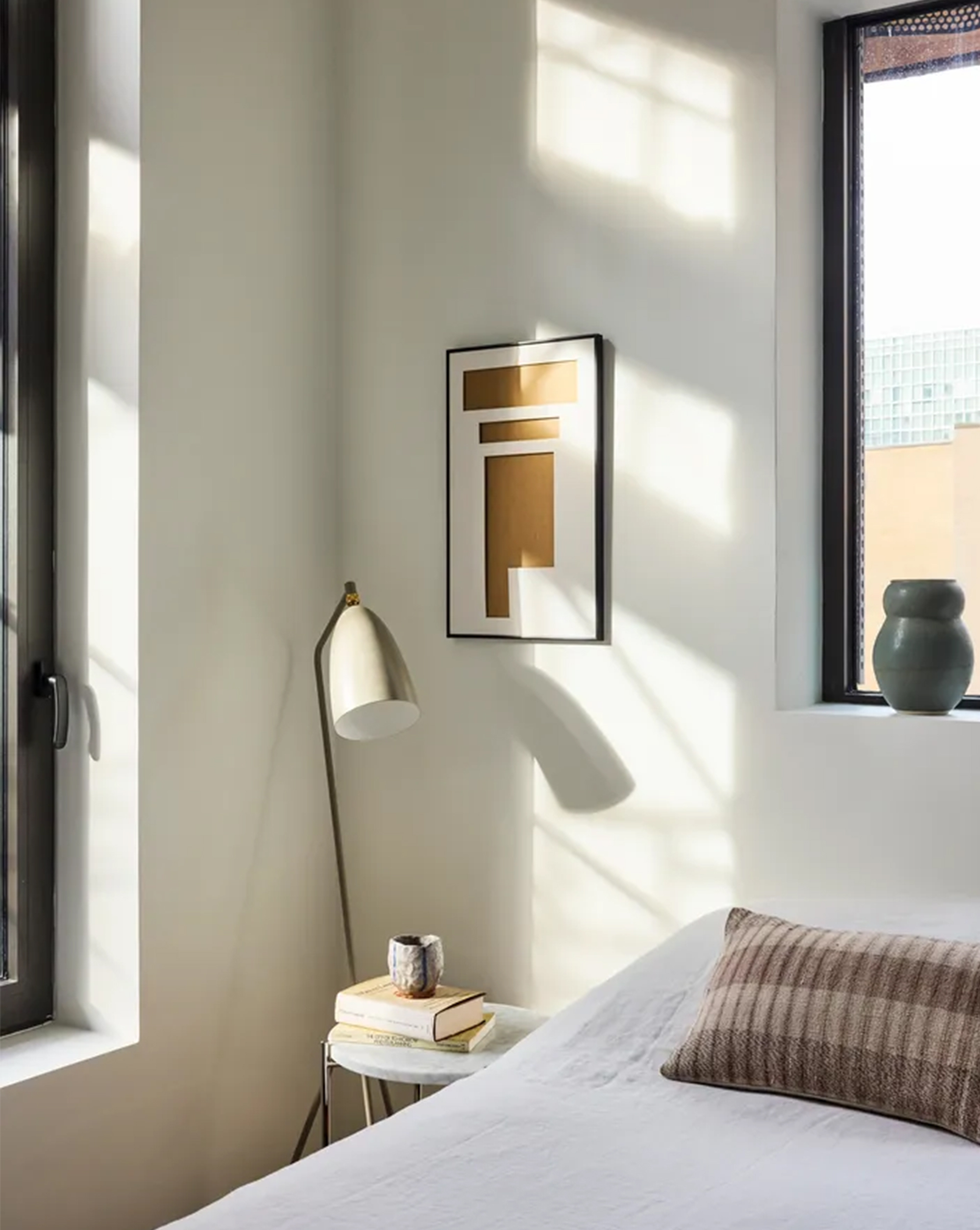 Nine Chapel 的內部採用白橡木地板,挑高的天花板搭配超大的觀景窗,讓住所沐浴在自然光線中,俯瞰布魯克林的城市景觀。GUBI 和 Tankhouse 的合作如同一段與自然共舞的美妙旅程,這份理念融入整棟建築的每個角落,皆洋溢著 GUBI 精髓:自然的連結、優雅的氣質,與時間的沉澱。