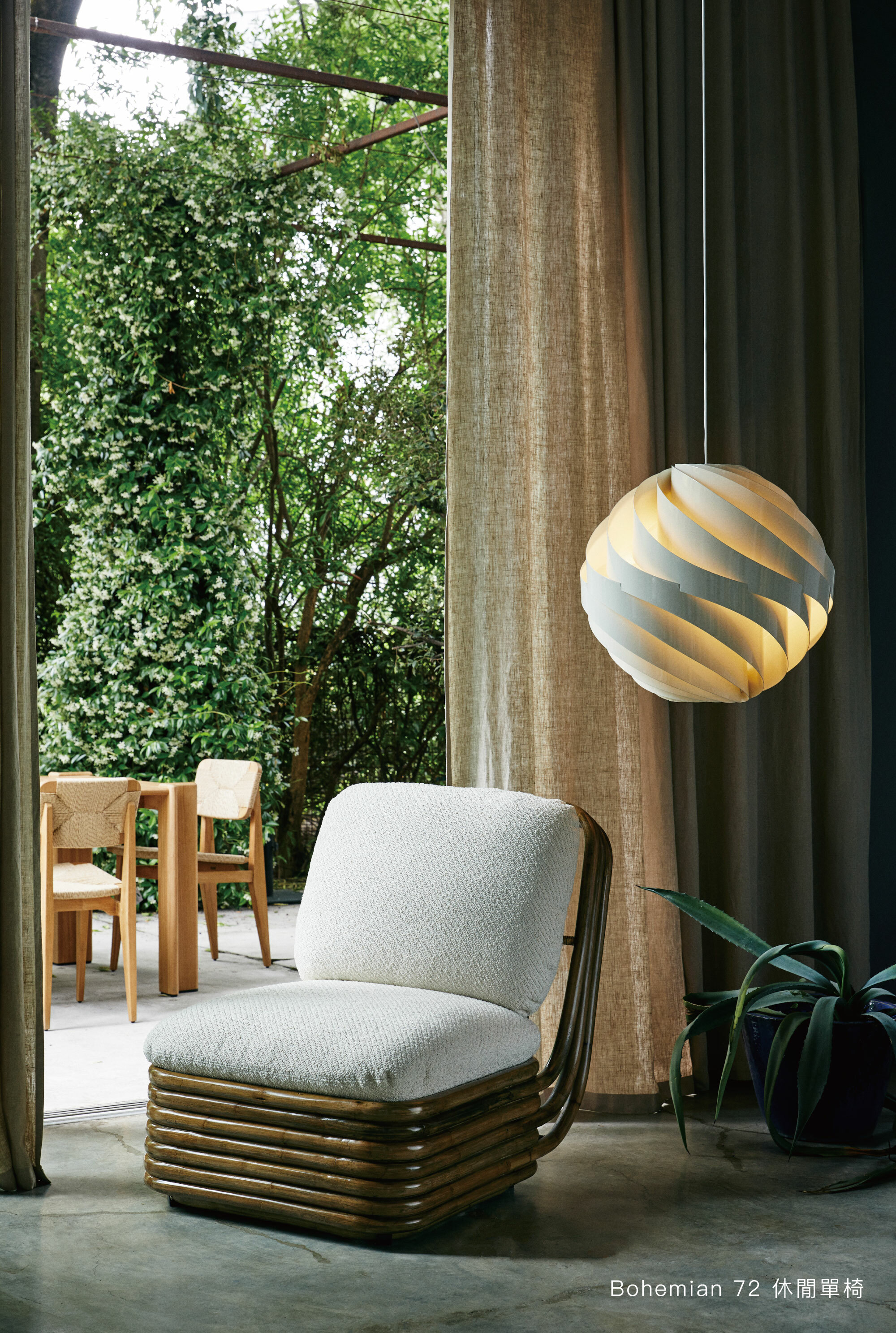 夏天不僅是一個單純的季節,可以透過家具的運用跟植栽的點綴,讓夏天變成一種生活態度,試著推開門突破室內外的場域界線,坐躺在 Pacha 戶外休閒椅或 MR01 休閒椅上,享受陽光和綠意相互交織出愜意慵懶的自然氛圍之中,體會沒有牆壁或天花板的空間限制的寬闊感受。