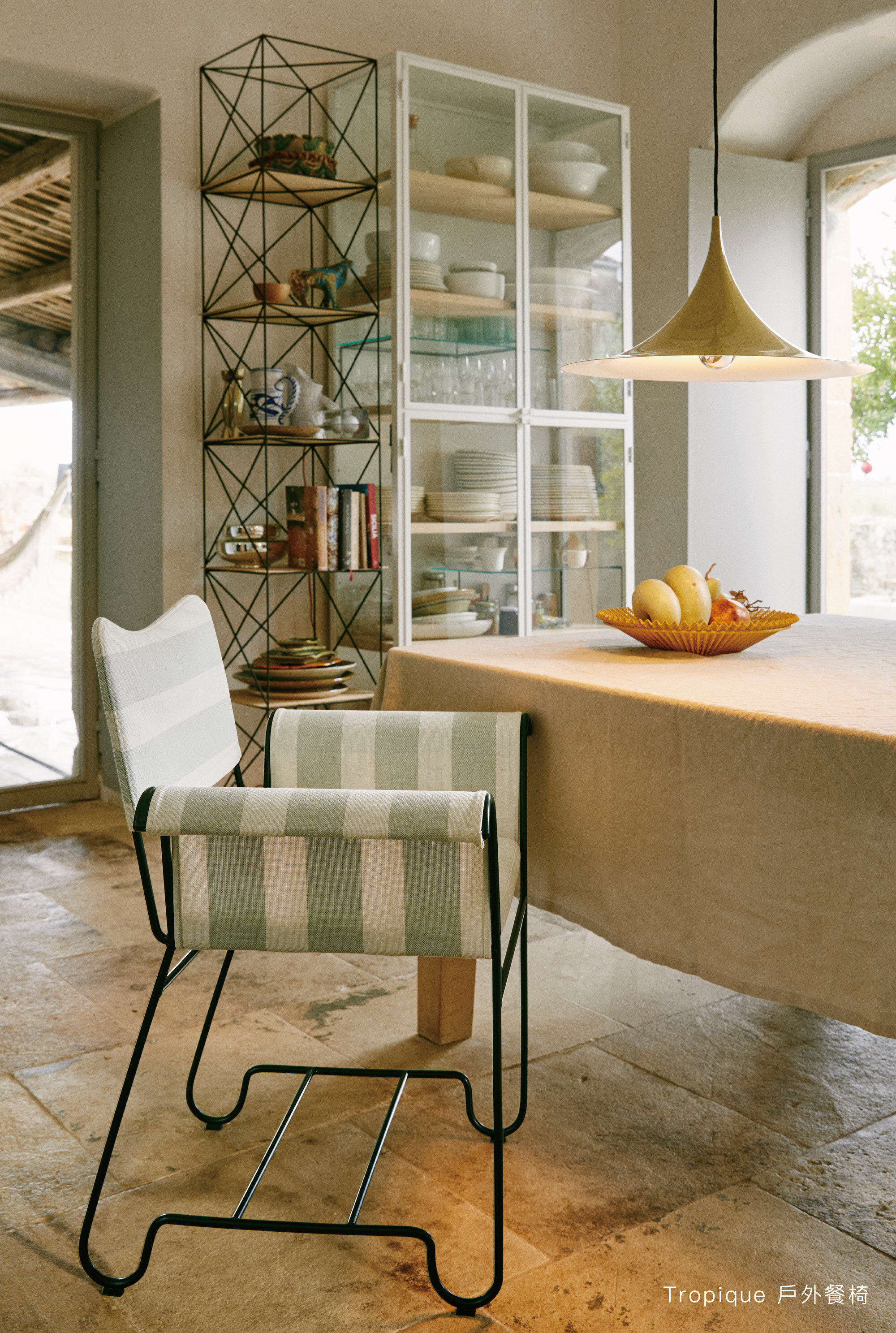 夏天讓人聯想到活潑又熱情的奔放氣息,在戶外家具的設計中可以透過色材質的選擇與運用完美呈現,,Tropique 戶外流蘇餐椅的扶手裝飾增添些許的渡假元素,同時兼具裝飾作用讓戶外場所的配置選擇更為活潑。