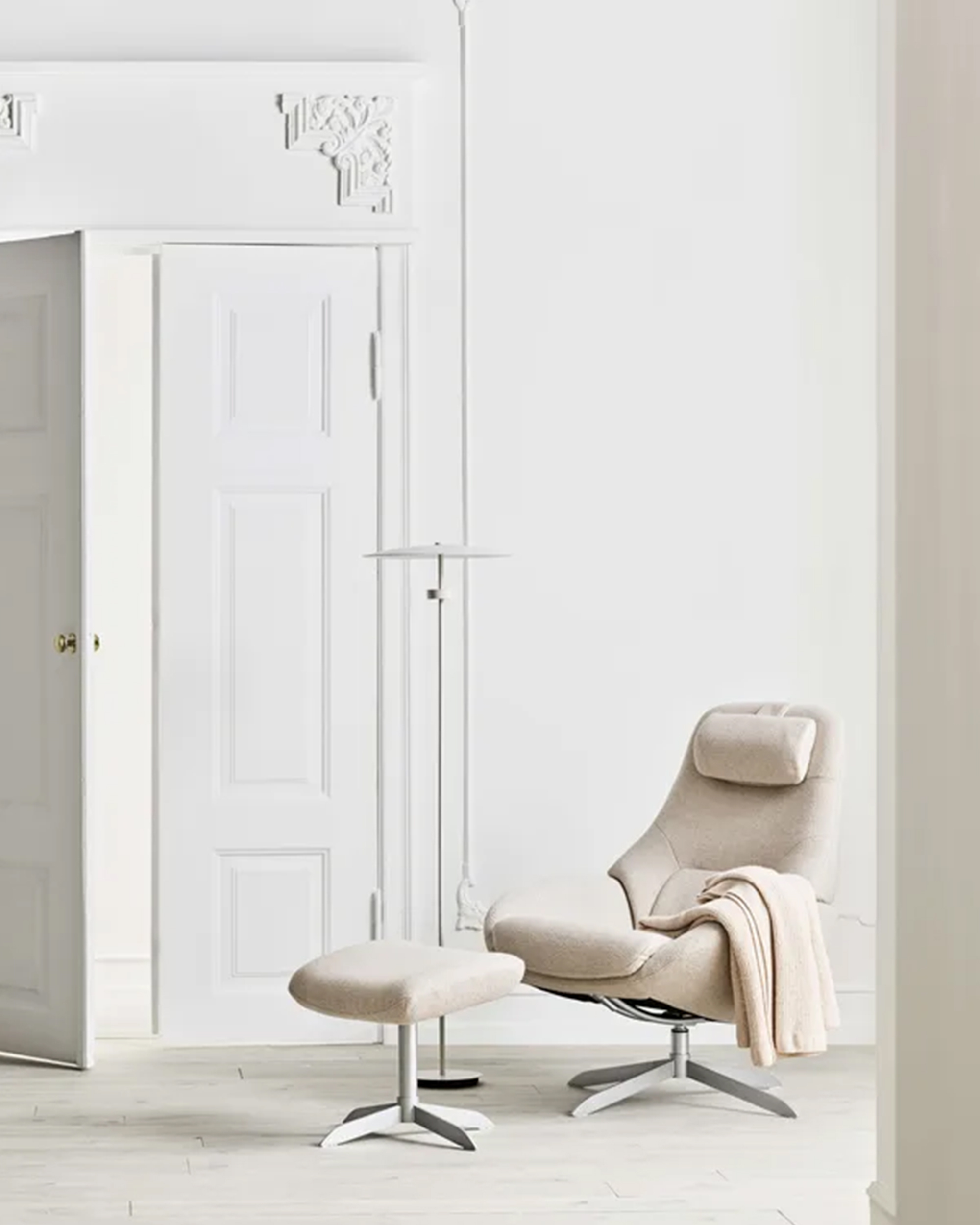 Bolia的Saga單椅和腳凳組合,擁有極致的北歐風格,簡約而不失優雅。獨特設計、迷人的線條和舒適的材質,讓人一坐下就能感受到放鬆和愉悅,舒服到不知不覺就會睡著。
