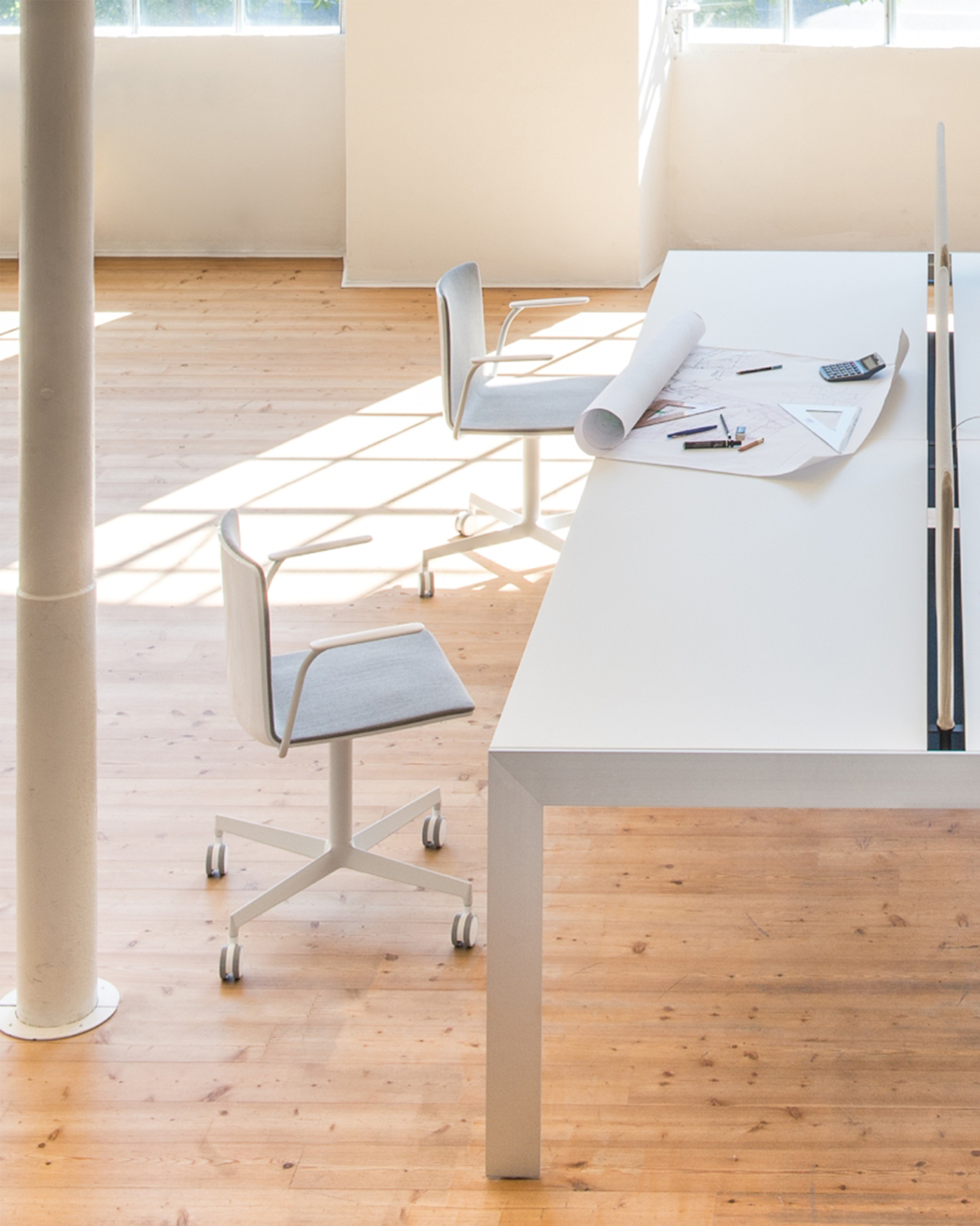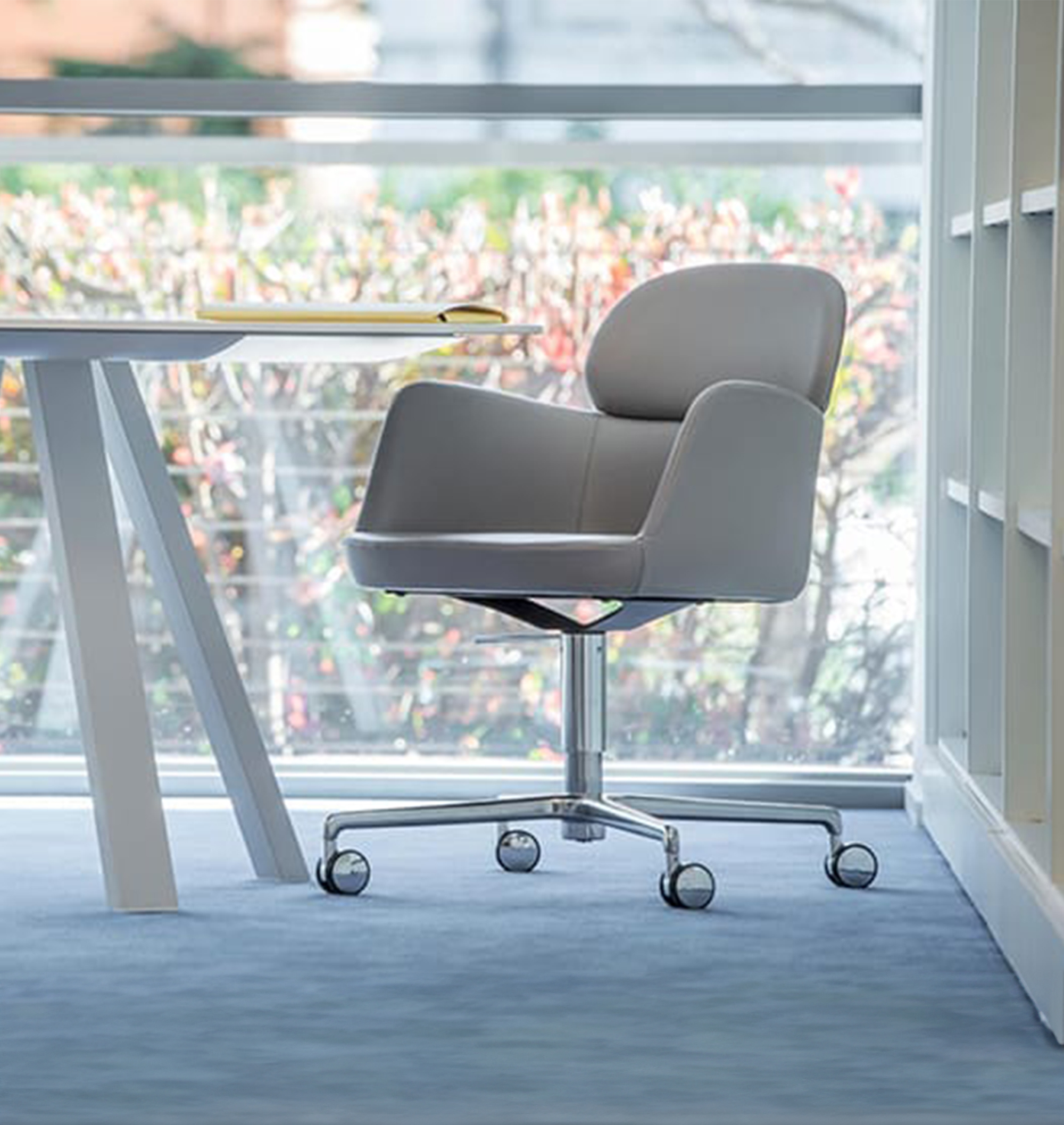 Noa 系列巧妙地將優雅的比例與卓越的舒適性完美融合,這一切得益於其創新的構造技術。椅身採用耐用的PC材質,並搭配柔軟坐墊,提供絕佳的舒適體驗。壓鑄鋁製底座配有滾輪,加上可升降設計,讓 Noa 系列成為商用空間的理想選擇,兼具功能性與美感。