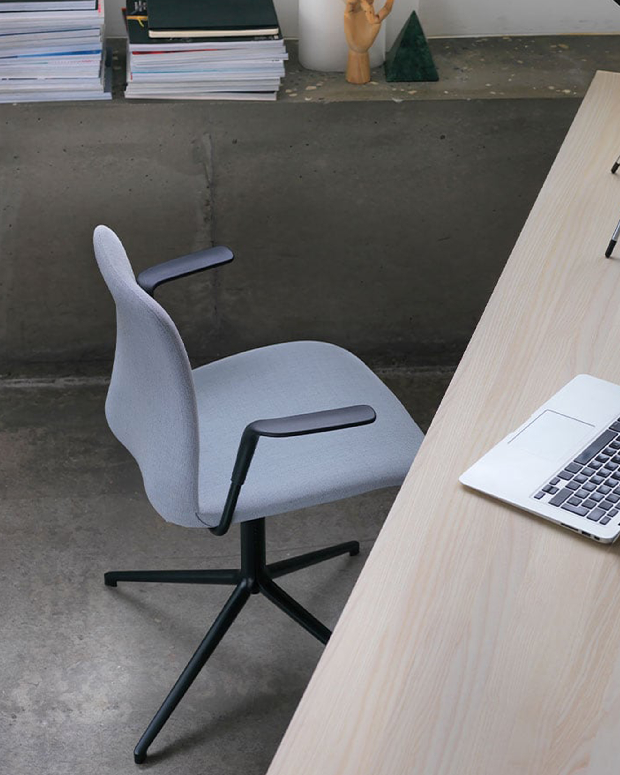 Mood 系列椅子由 Hans Thyge & Co 設計,結合舒適、美學與功能性。多樣的框架、顏色和布料選擇,讓您輕鬆搭配空間。流線型設計貼合人體,提升支撐與舒適感。適合一疊文件搭配計算機,不停核對數字的忙碌感。
