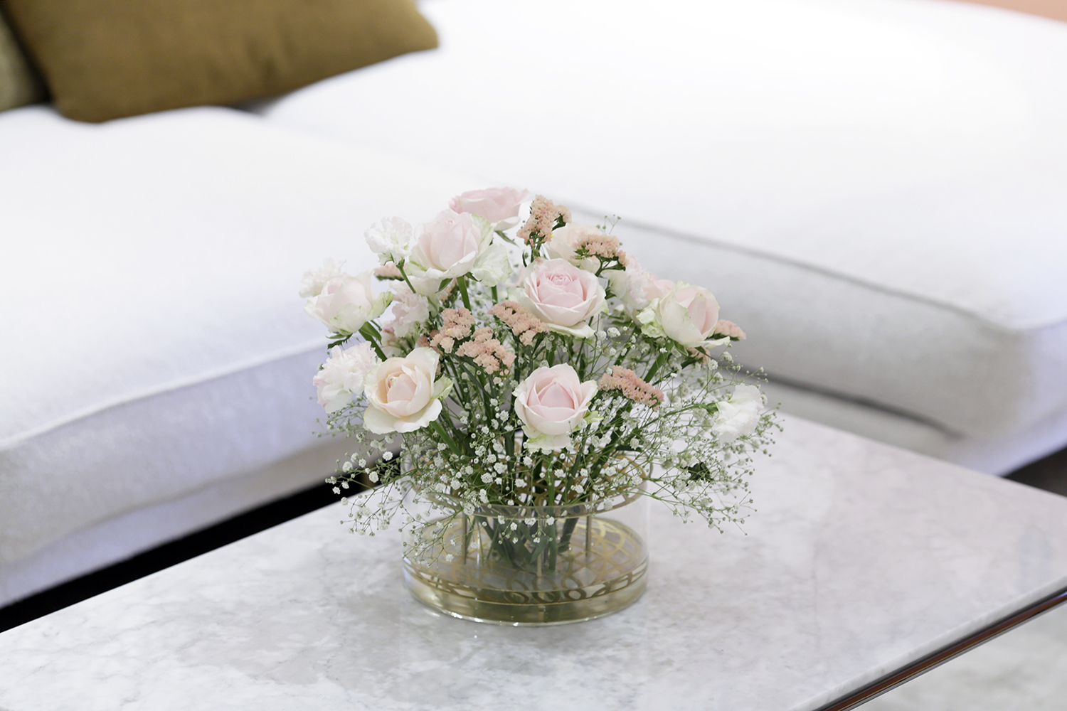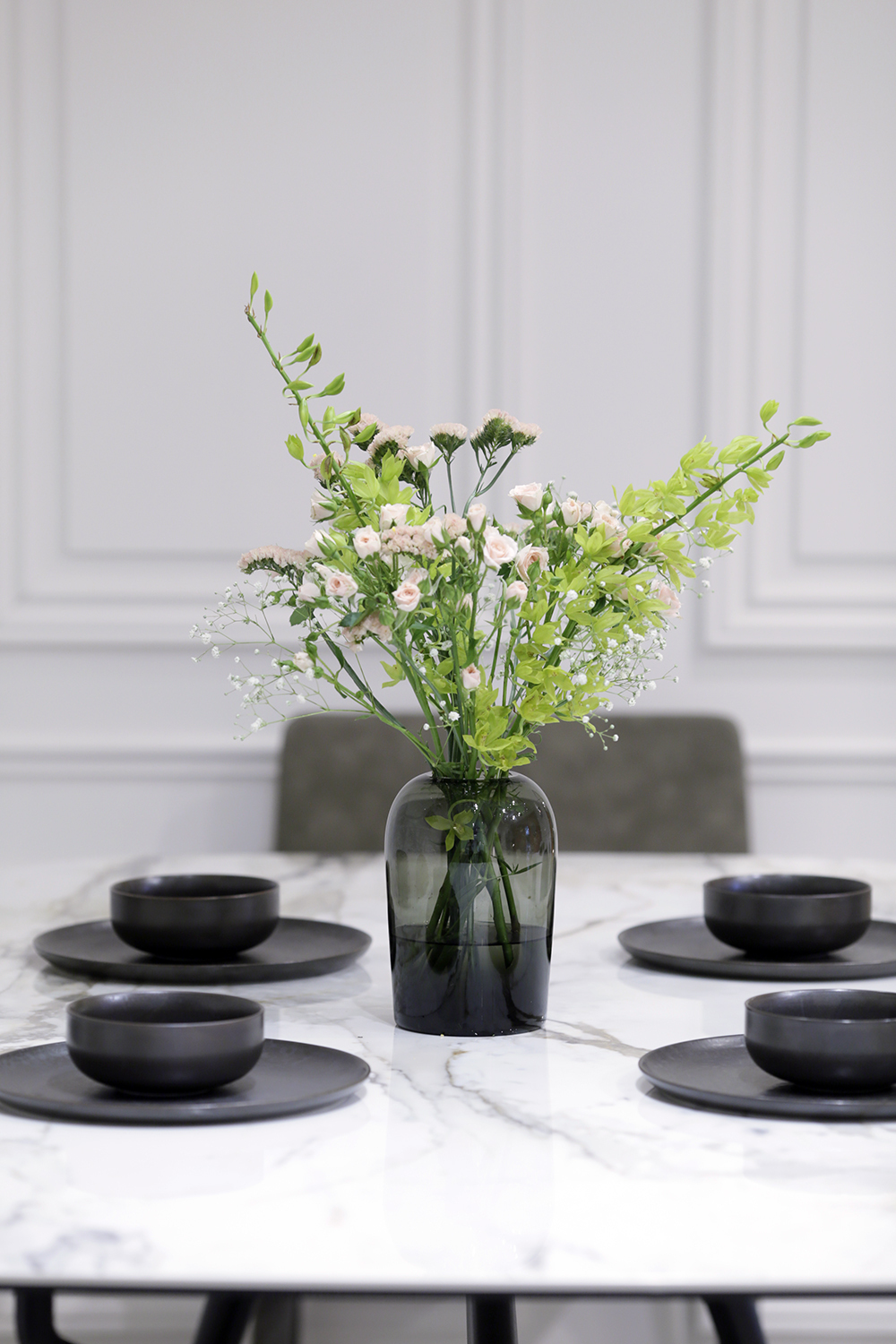 瓶身半透的狀態再搭配不同的鮮花穿插其中