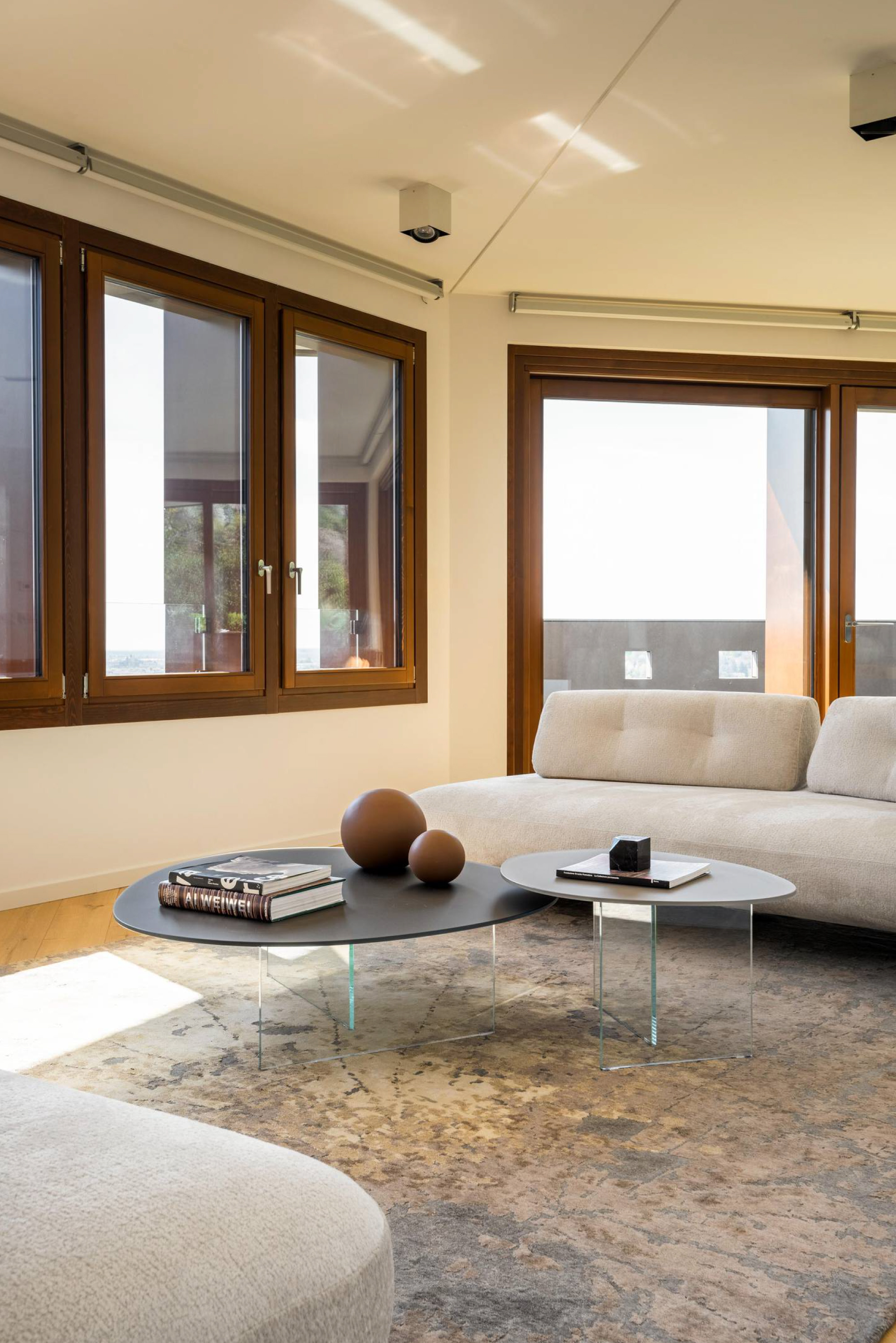 在上城區的頂級公寓客廳裡,你可以直接看到絕美的威尼斯城牆,整面的落地窗讓陽光盡情灑落。開放式空間裡,忙碌的一天後,他們在客廳可以盡情的放鬆,躺在 沙發上享受陽光與美景。