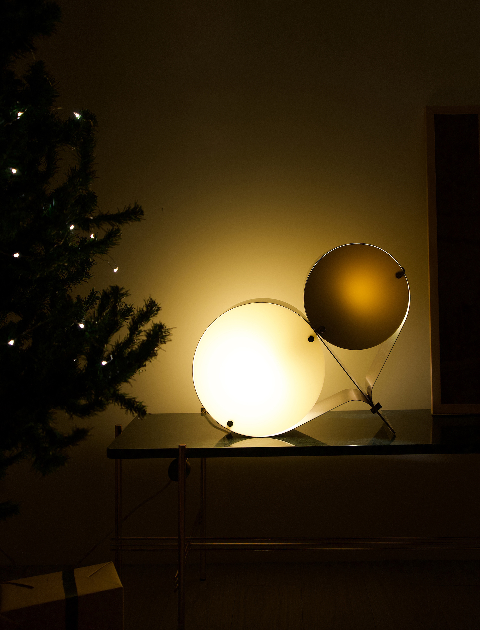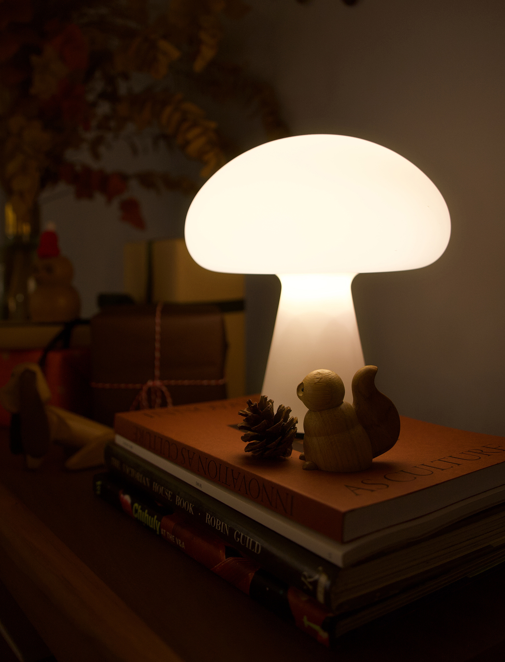 搭配 Obello 便攜式桌燈,柔和的光影為每件擺飾增添溫暖光彩。這款燈由美國設計師比爾庫裏(Bill Curry)於 1971 年設計,是當時“整體統一外觀”燈具的先驅,靈感來自原子時代和太空競賽。採用磨砂口吹玻璃製成,內部兩個LED光源營造均勻柔和的光暈。可充電設計提供高達 40 小時的光照,並適用於室內外,從居家擺設到露營燈光都完美勝任。如此結合設計與功能的 Obello,不僅是燈,更是節日溫馨氛圍的完美夥伴。