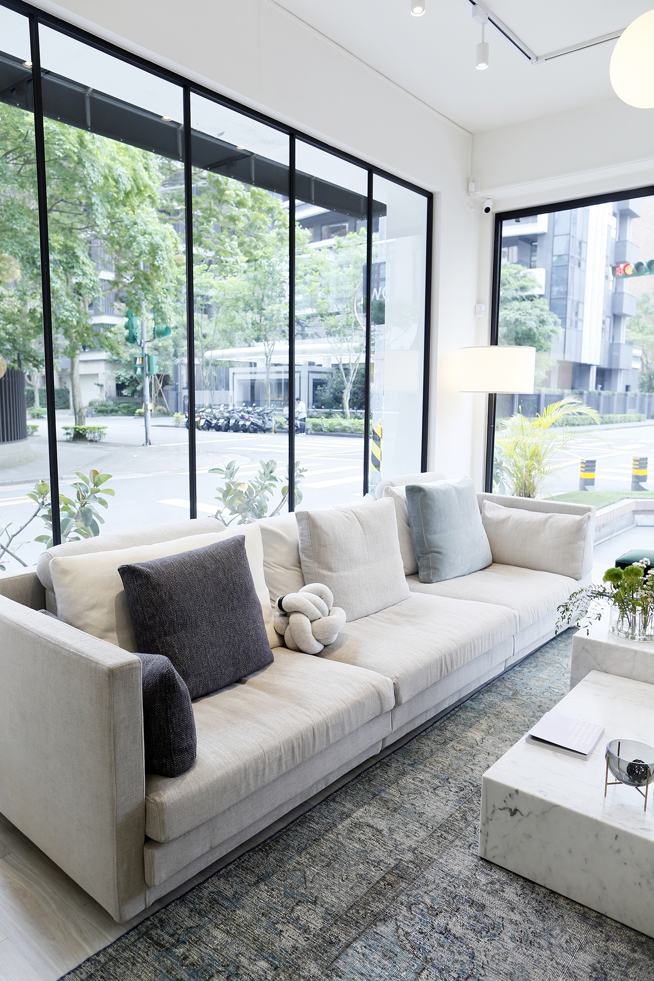 再依據沙發的配色及營造的氛圍來搭配其他配件