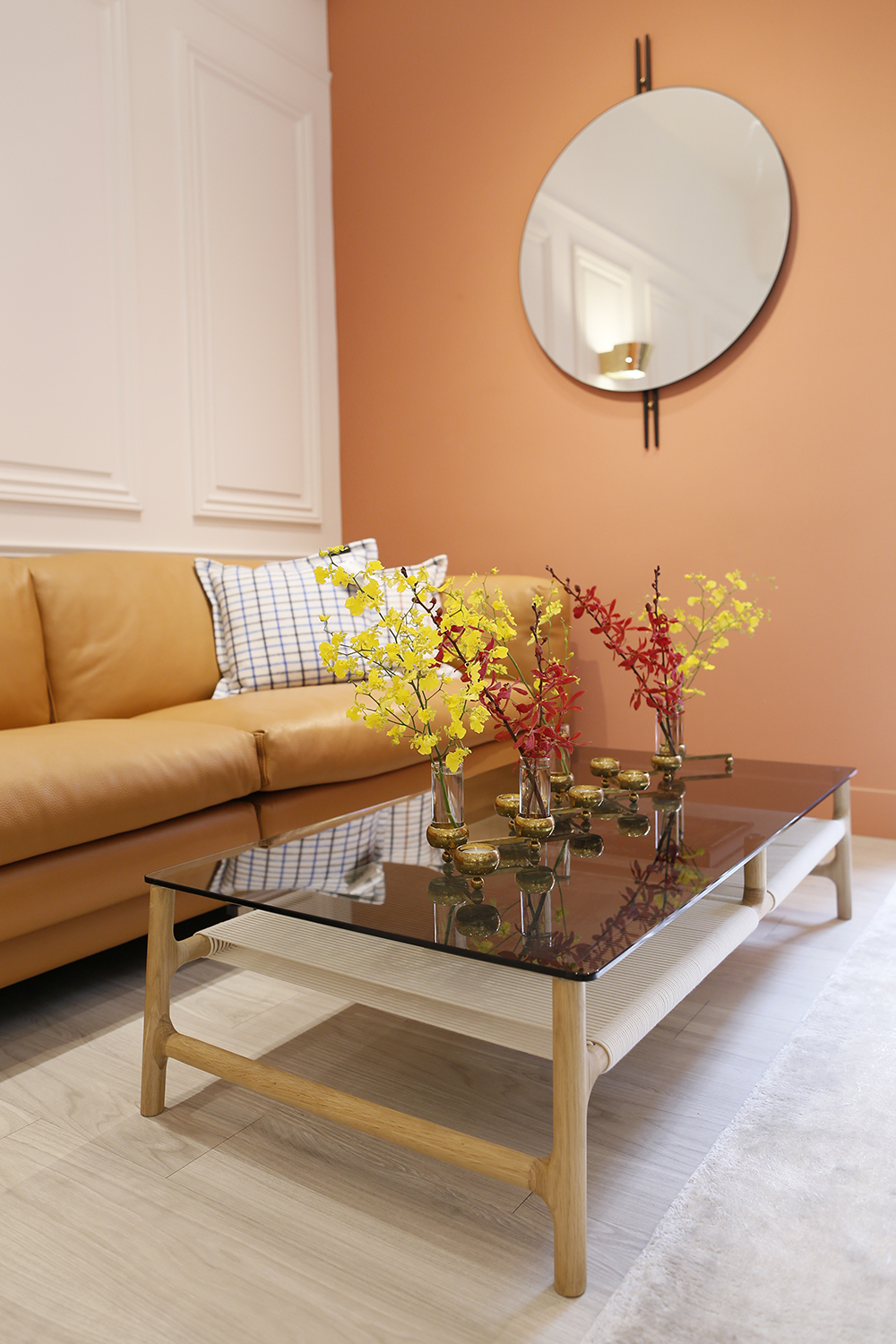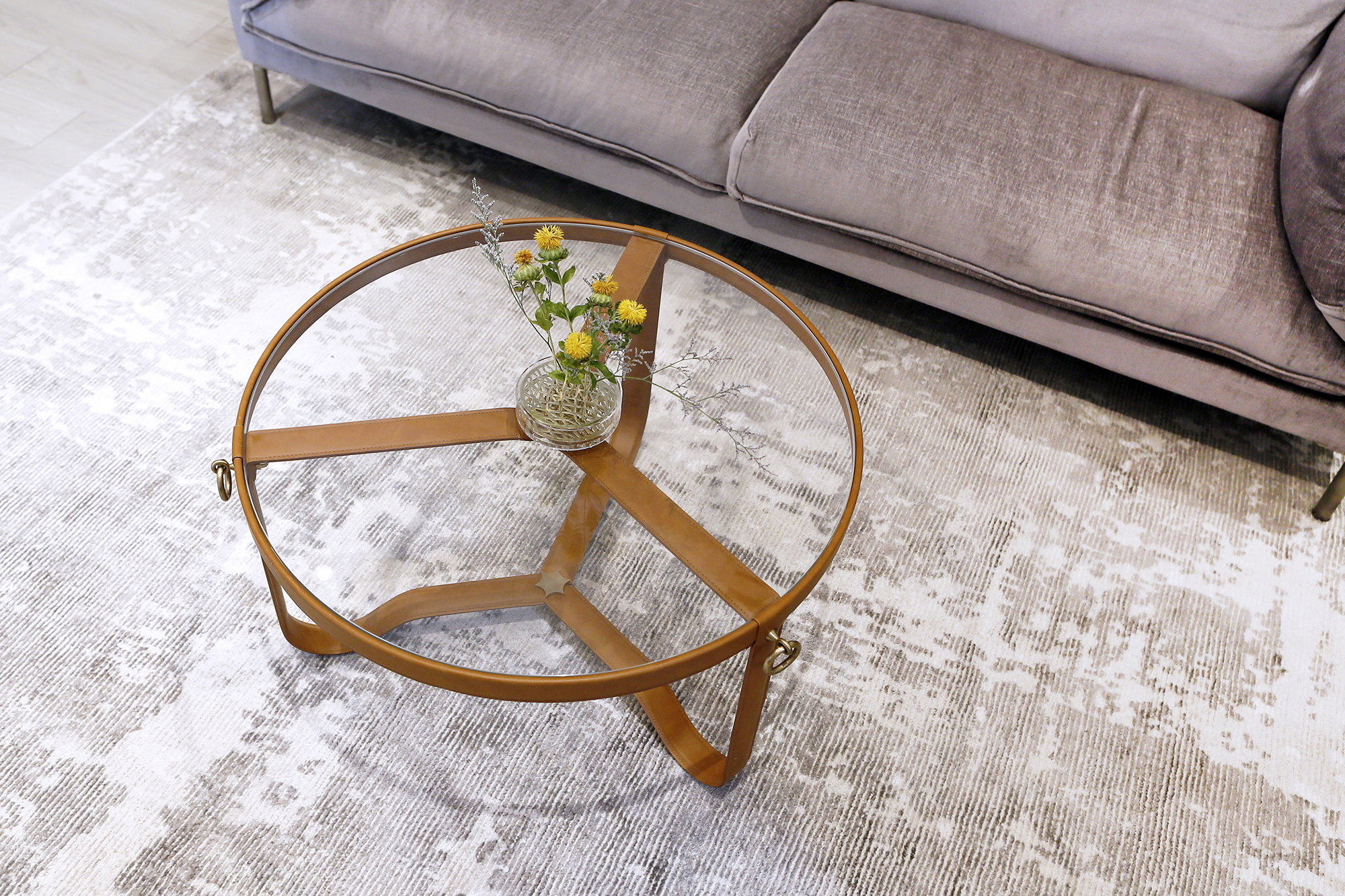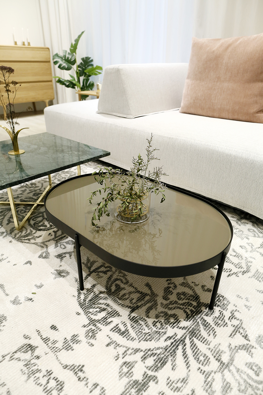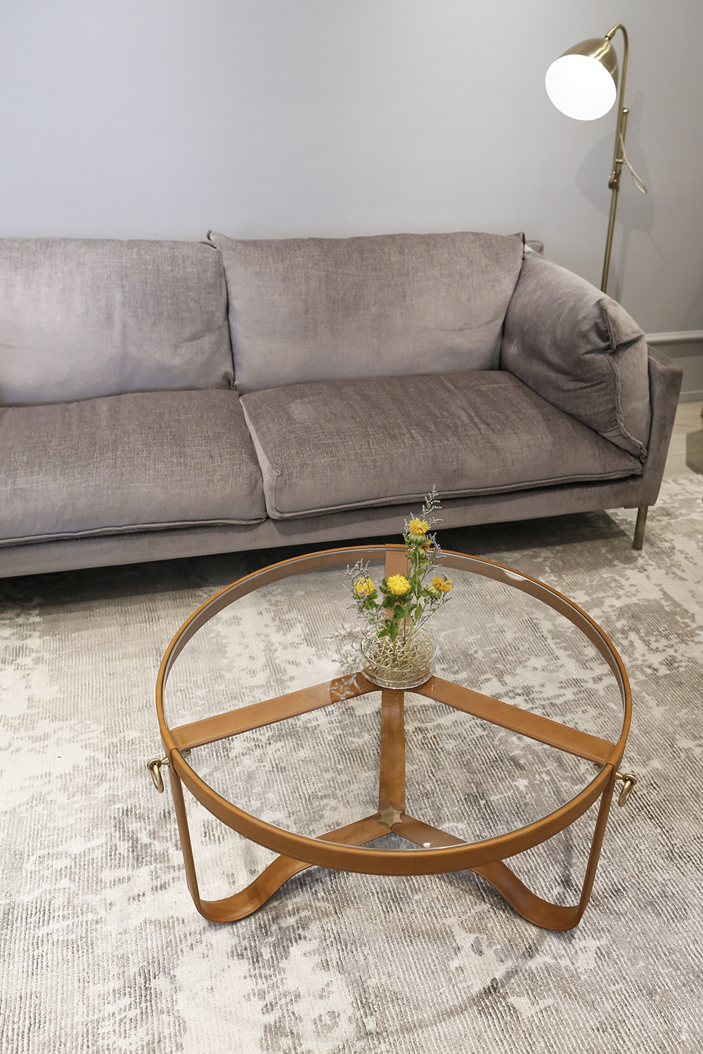 有著堅固玻璃桌面的NoNo 茶几也能透過纖細的桌腳營造出通透輕盈感