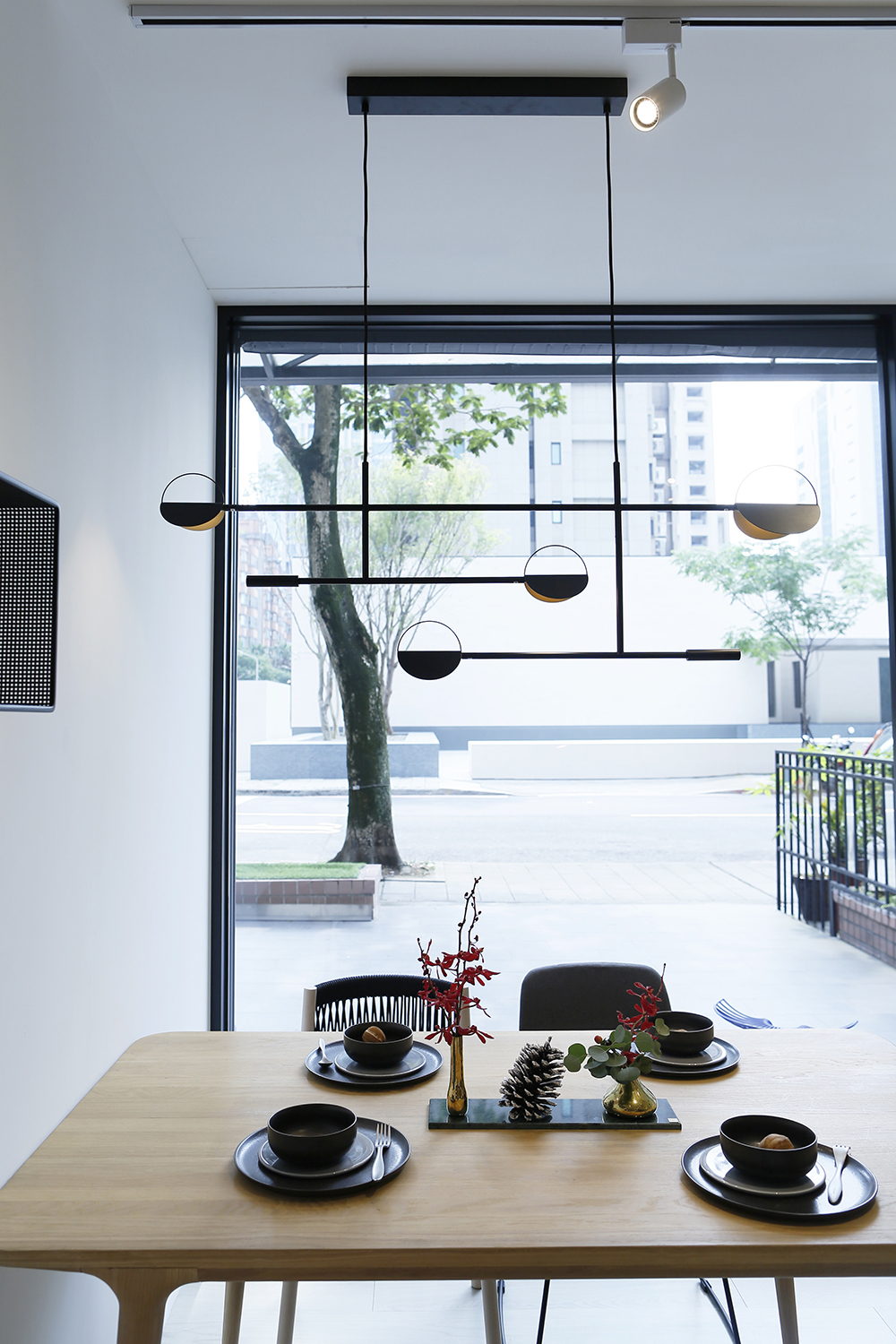 透過硬體的裝修及軟裝家具的各式線條相互呼應