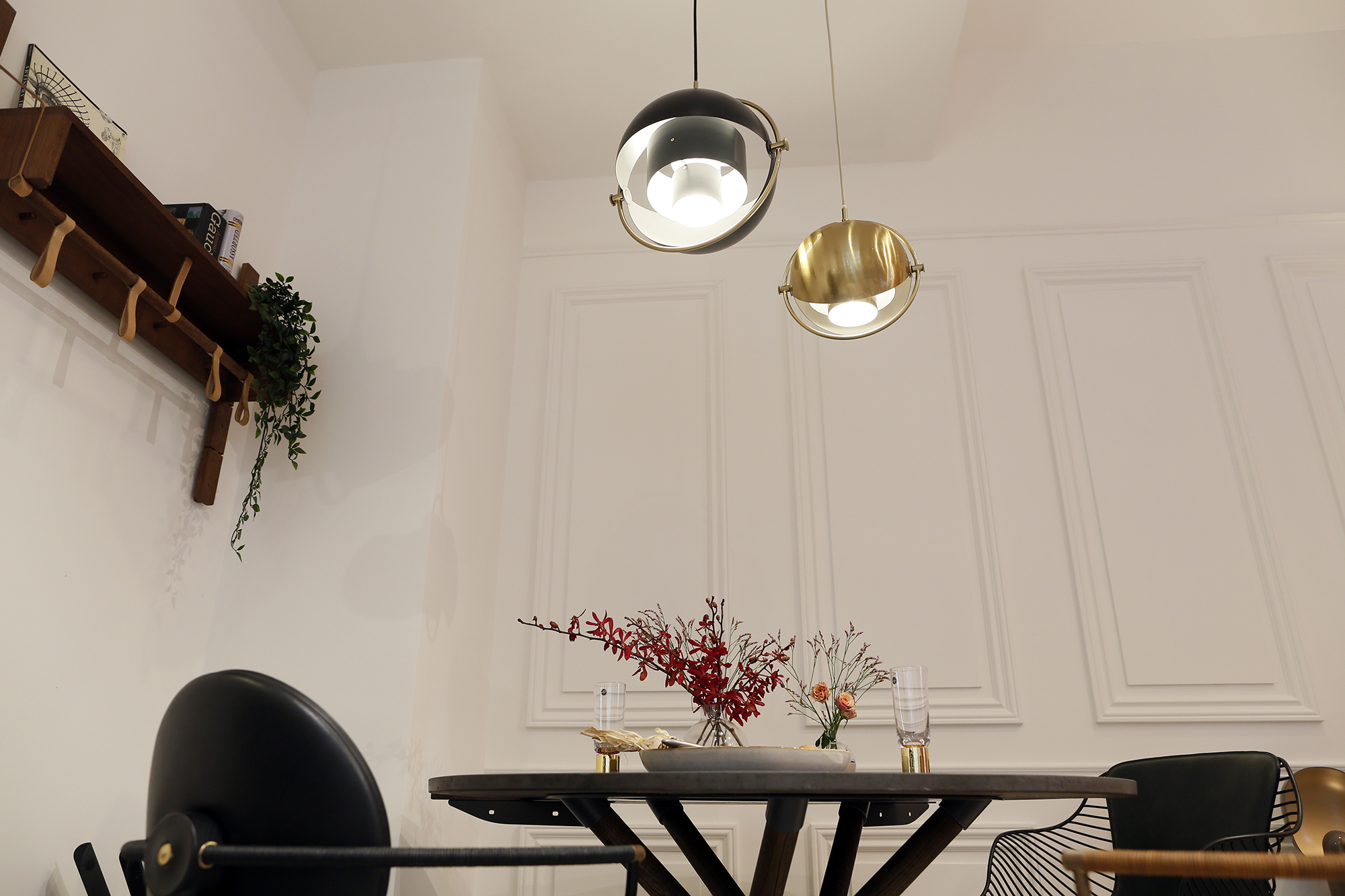 透過垂掛的吊燈或掛鐘來點綴視覺吧!