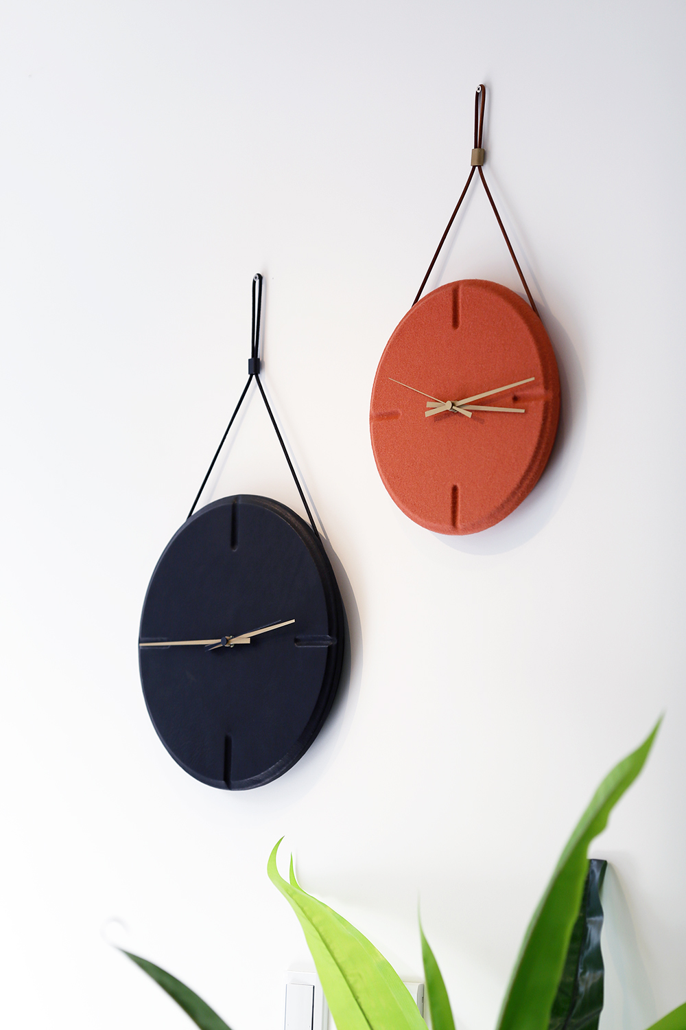 Love Clock 掛鐘的鐘面有羊毛氈款與皮革款兩種材質