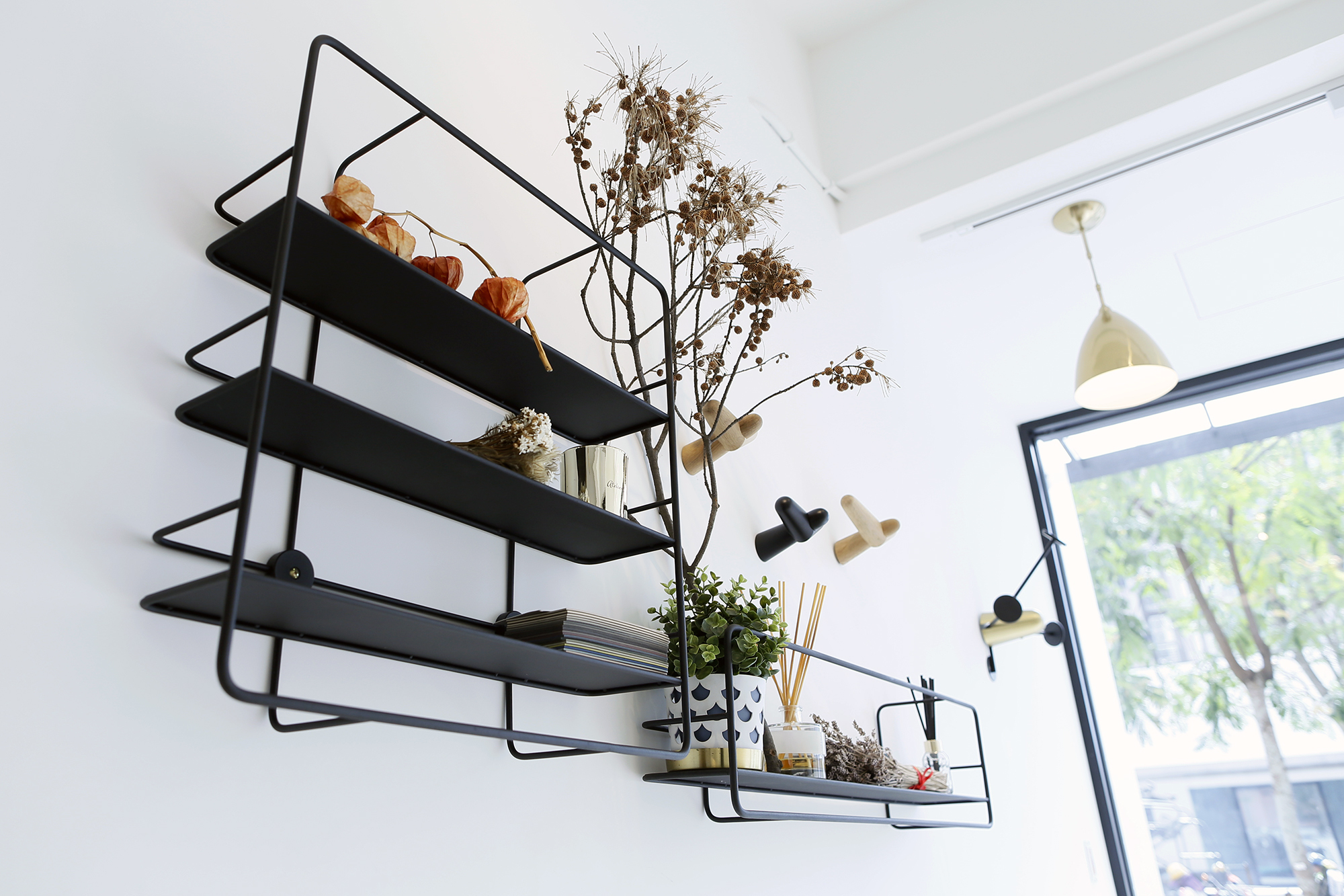 Matégot Dedal 壁掛書架可因應環境或是擺放的物品高度所需