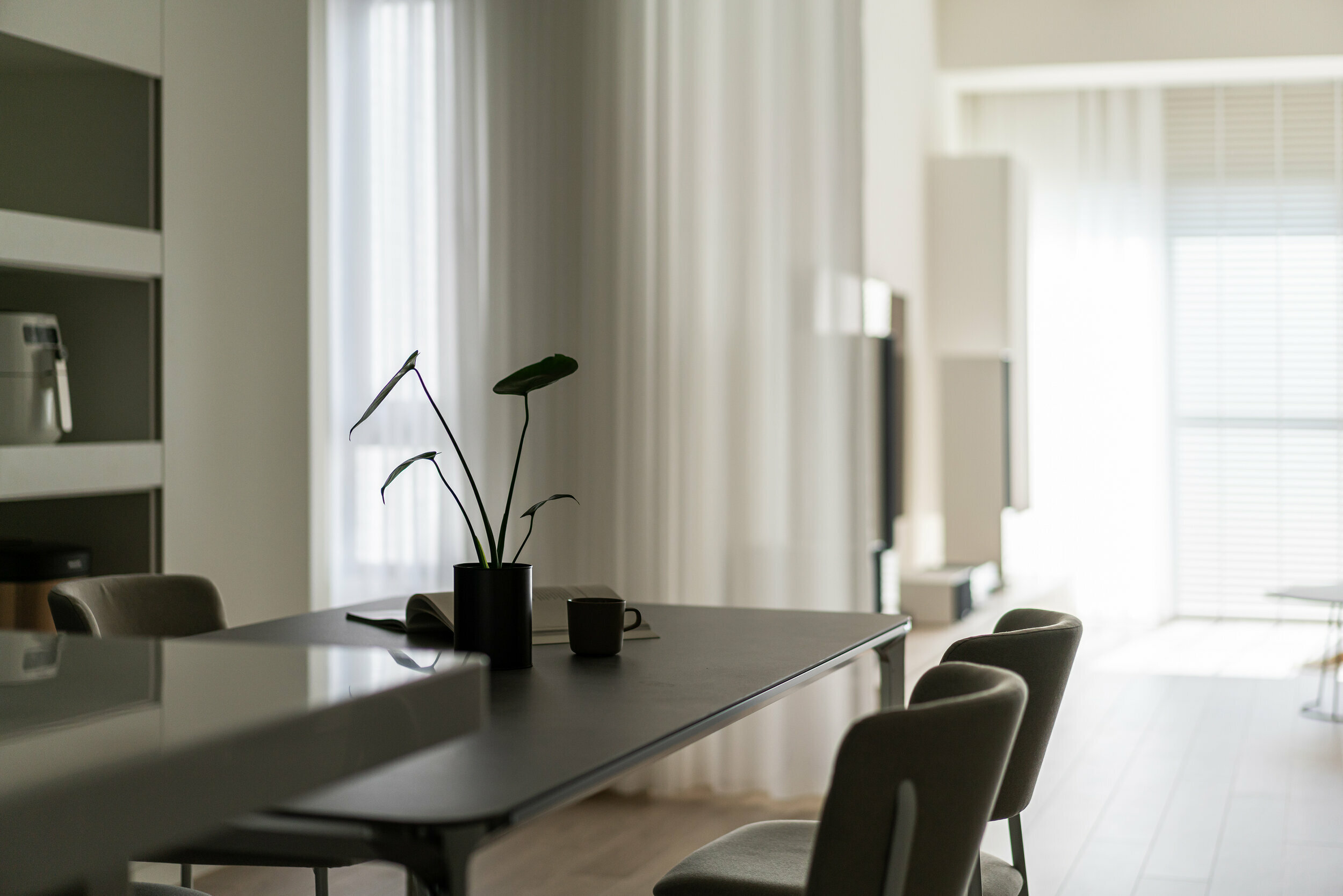 餐廳與客廳打通之後讓彼此之間的距離更靠近了