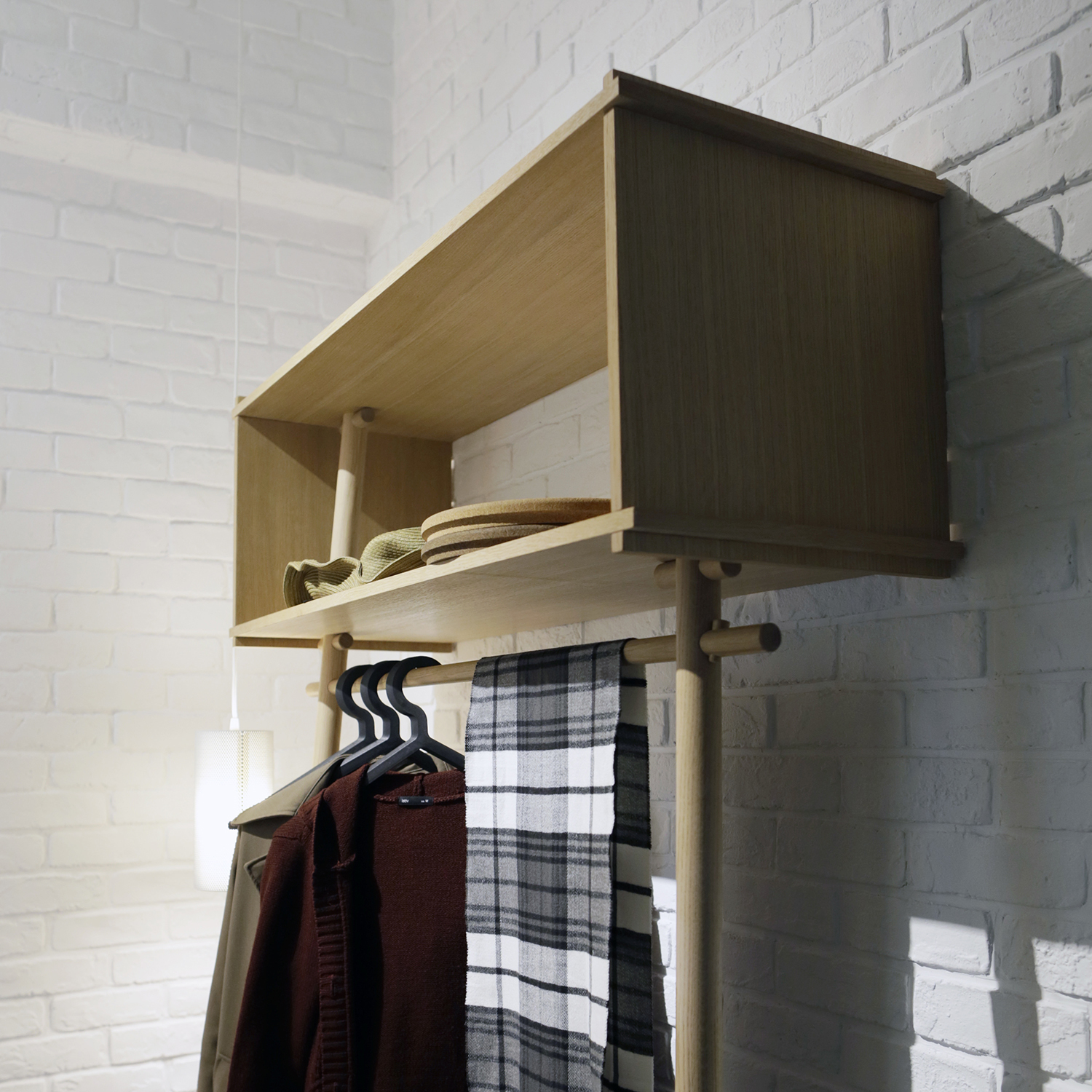 WOUD的Töjbox 衣帽架選用橡木集層板及實心橡木腳