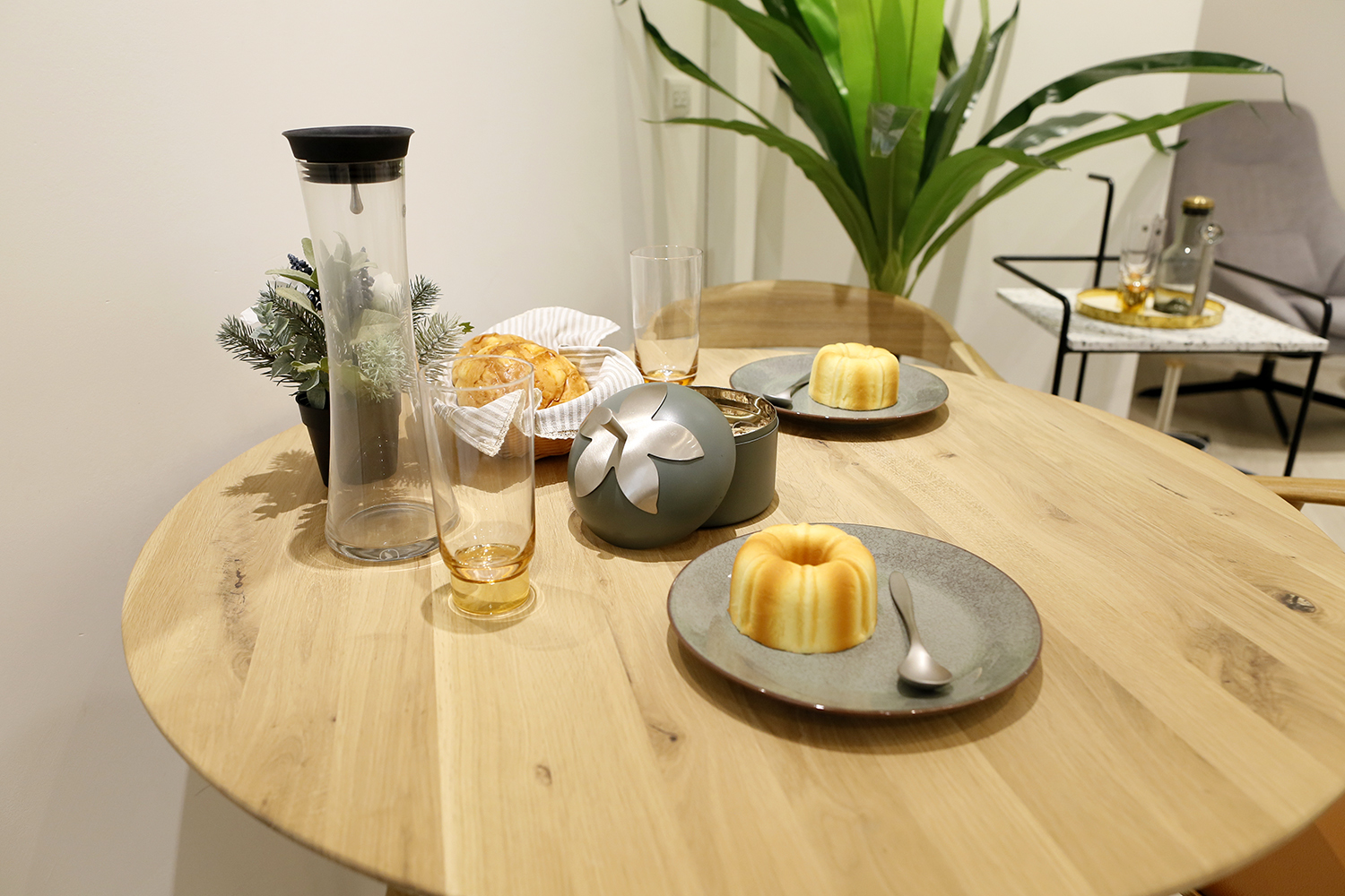 Nature 瓷釉彩餐盤上擺放著鬆軟的戚風麵包
