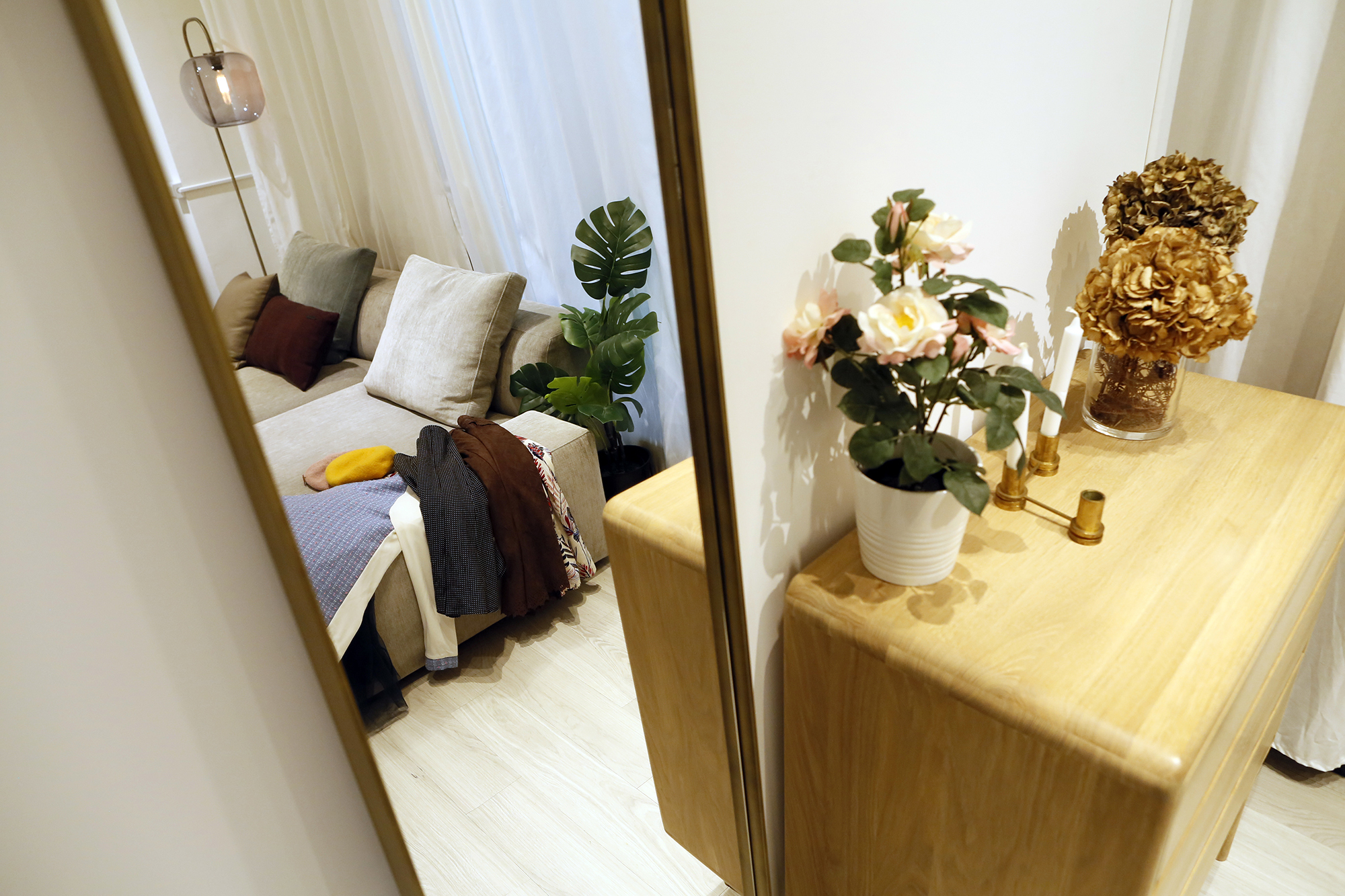透過鏡面反射映照的原理讓視覺的空間感更為延伸