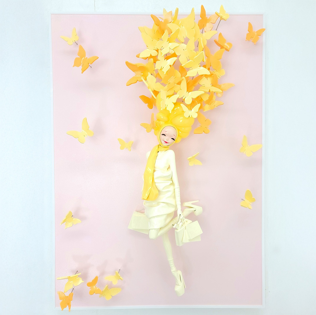 作品以女性形象為主,融合韓國古代的傳統包頭造型與現代女性的自信姿態,風格獨特且充滿個性。這些作品不僅展現普普藝術的趣味性,更將傳統與當代完美結合,成為十足的超流行藝術代表作。
