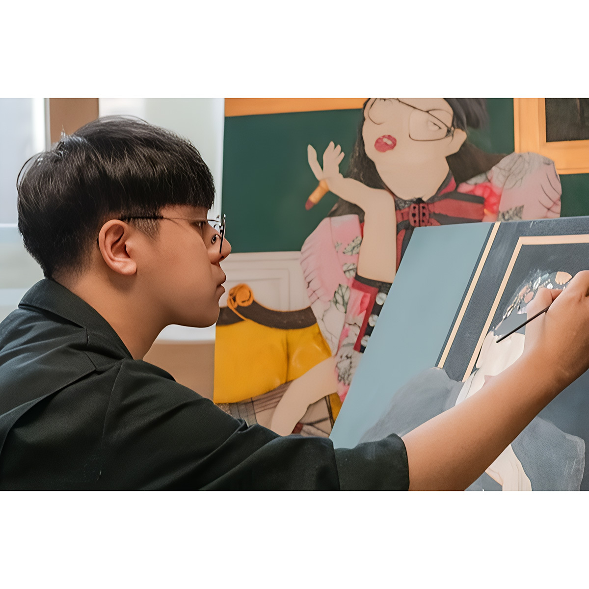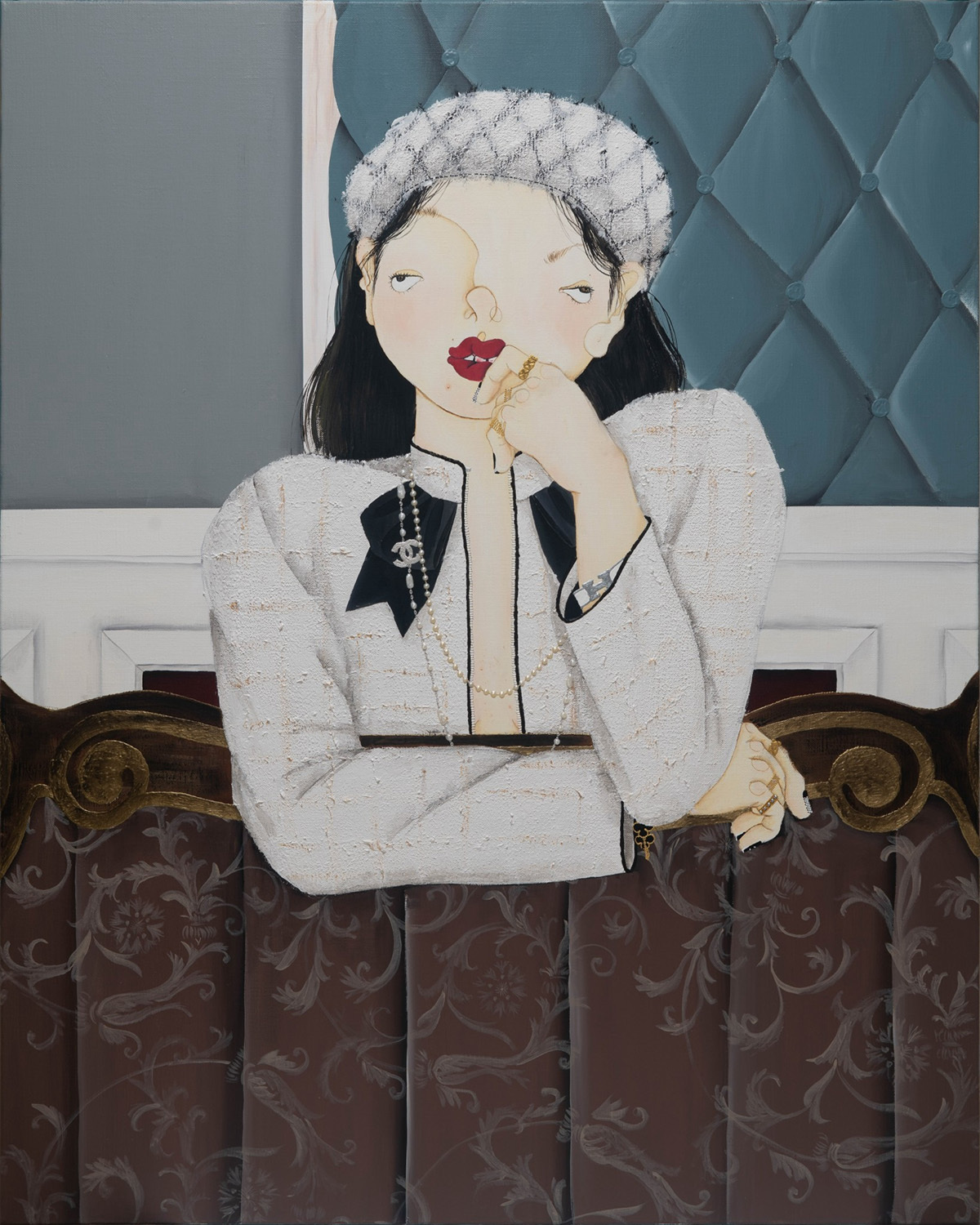 這段經歷讓宋真旭深刻意識到,時尚不僅僅是裝飾,更是一種改變人生的力量。在作品中,宋真旭以畫中人物的輪廓象徵過去的自己,而填色後的畫面則展現轉變後的現在,甚至是未來。當年透過穿搭獲得的體悟,如今再次體現在畫作中的模特身上。因此,宋真旭不僅是畫布前的藝術家,更是畫作中模特兒的造型師。